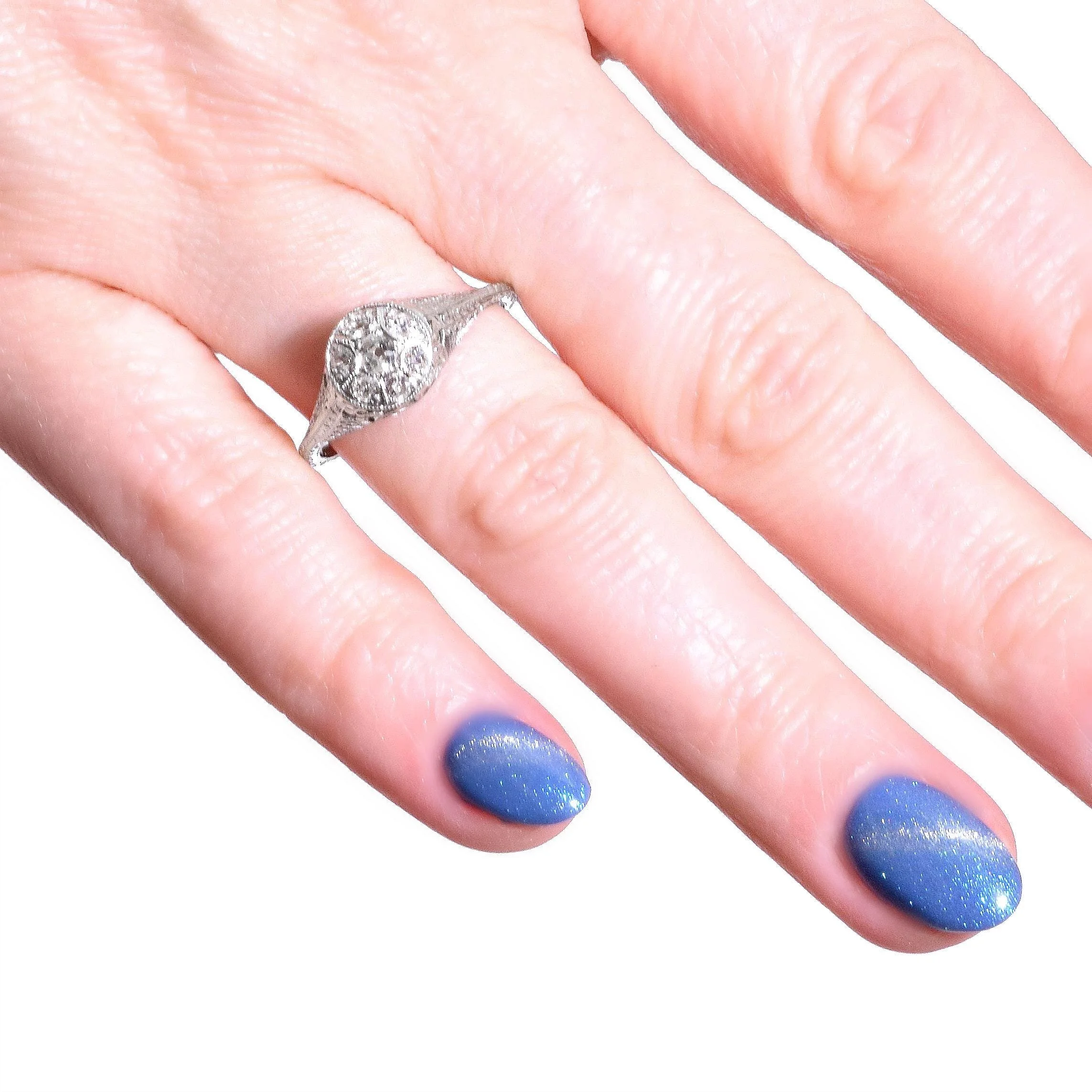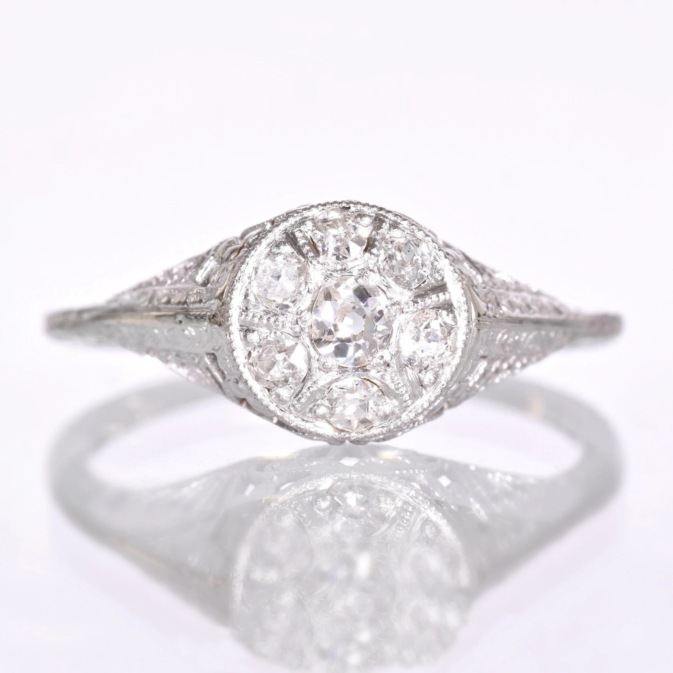 1910s Platinum Diamond Cluster Ring - Antique Engagement Ring