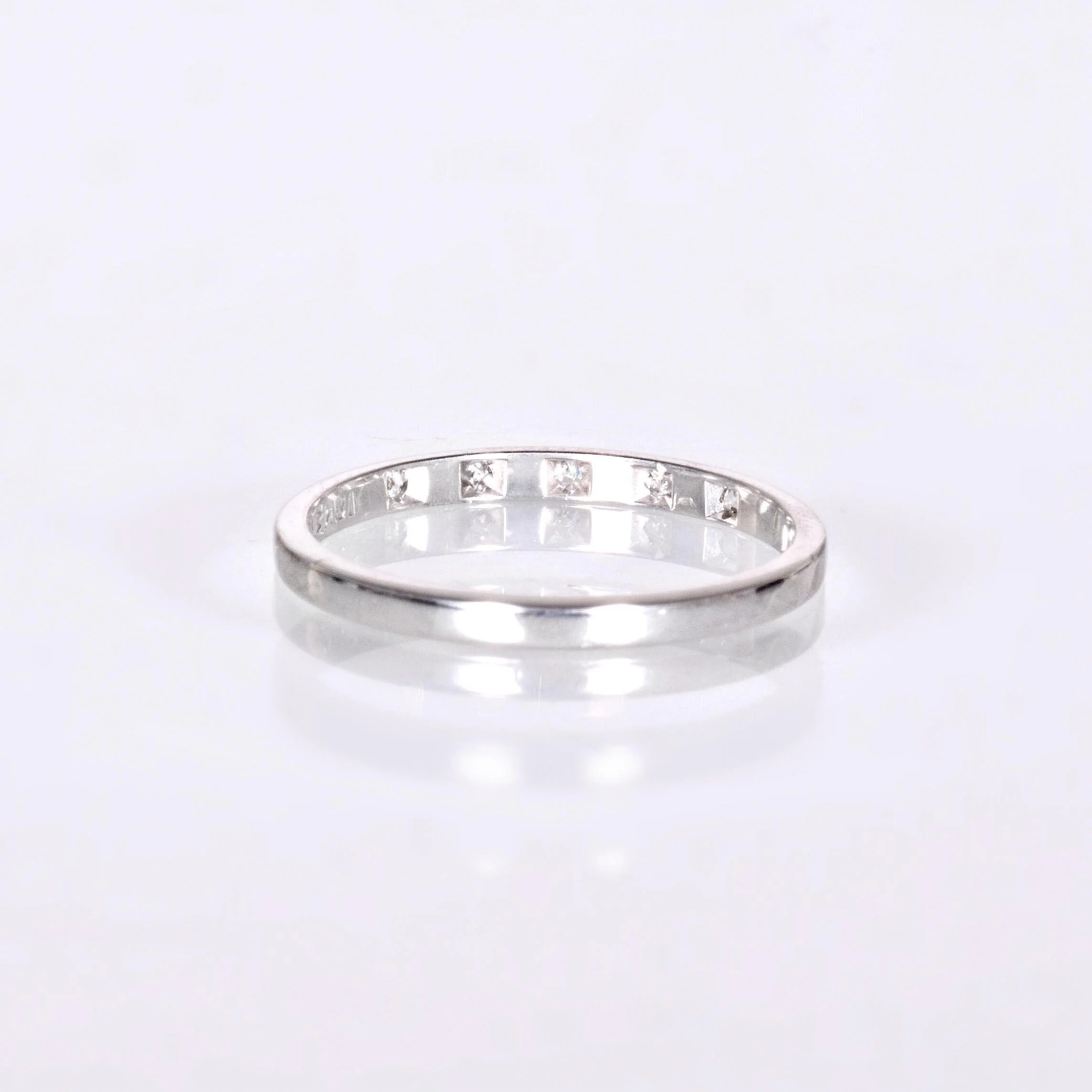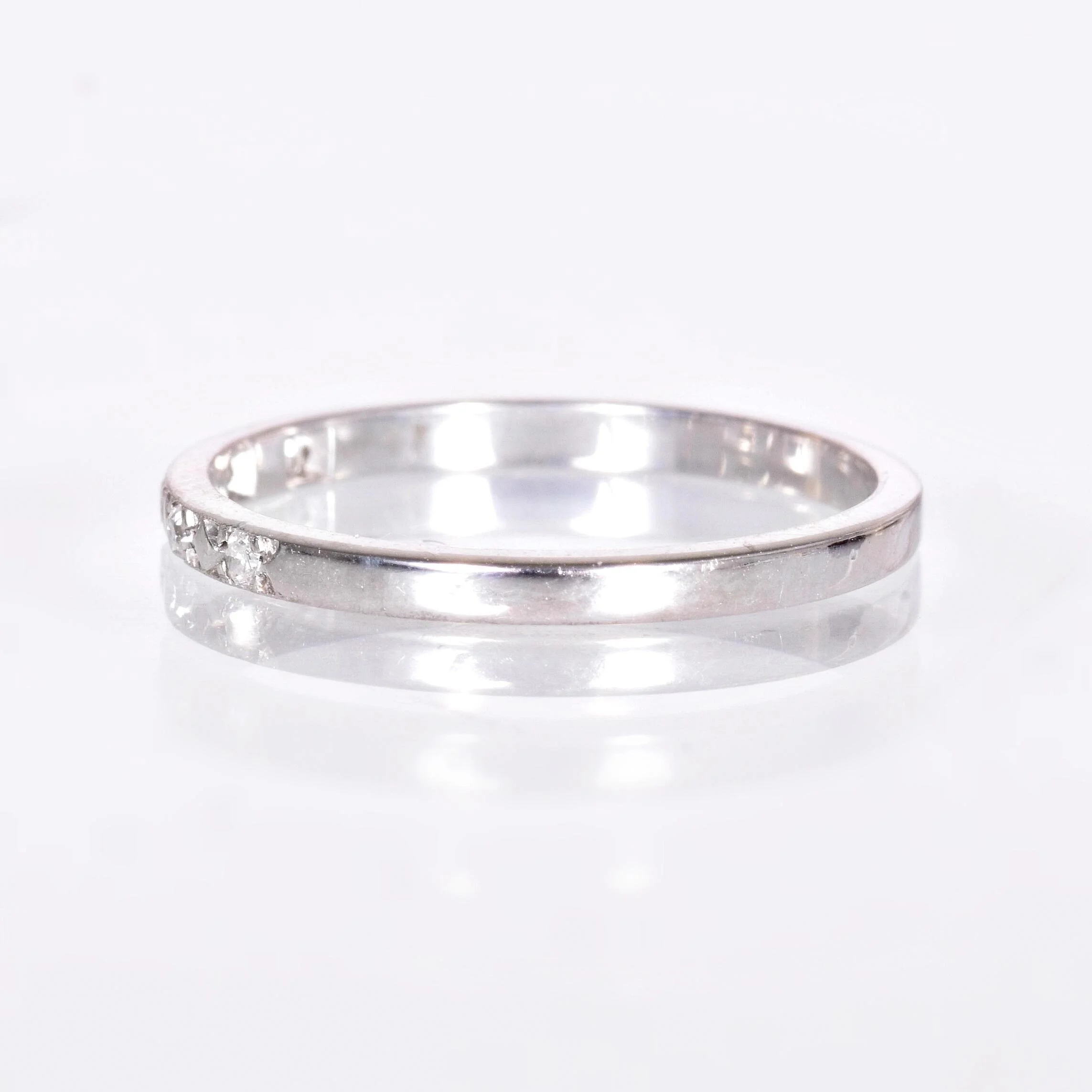 Antique Wedding Band - Antique 18k White Gold JR Woods Diamond Band Circa 1920's 18k White Gold Manufacturer - JR Woods 5 Single Cut Diamonds =.07ct VS-SI/G-H Ring Size 5 (sizable) Ring measures approximately 1.7mm wide.