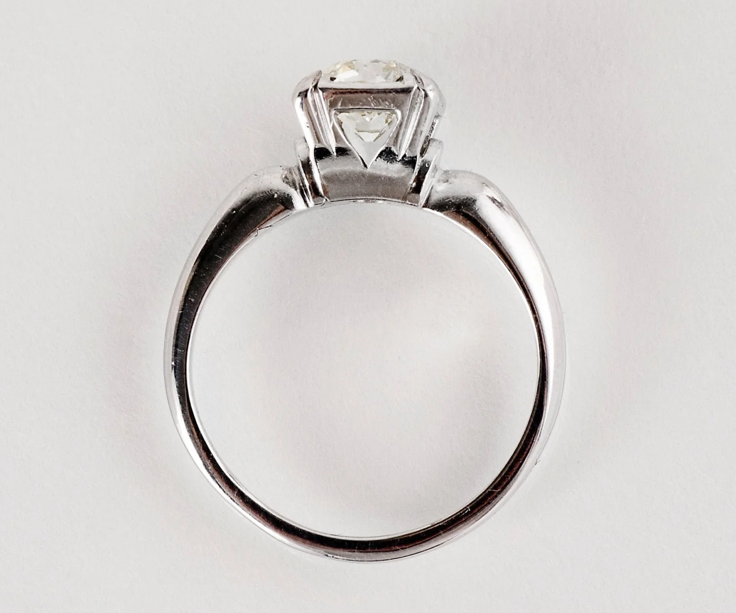 Your wardrobe is full of timeless pieces and elegant accessories that will never go out of style - so why should your engagement ring be any different? This classic 1930s gem is simply exquisite. A sparkling European cut diamond sits center stage in a refined and charming platinum setting that will stand the test of time. This antique treasure is just waiting for an equally enchanting bride.