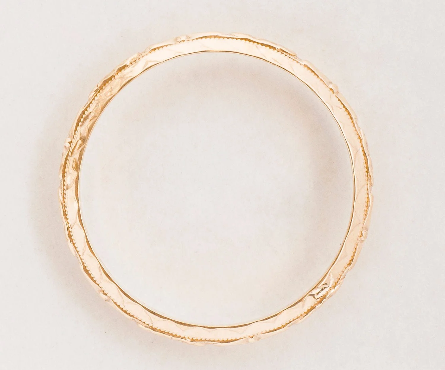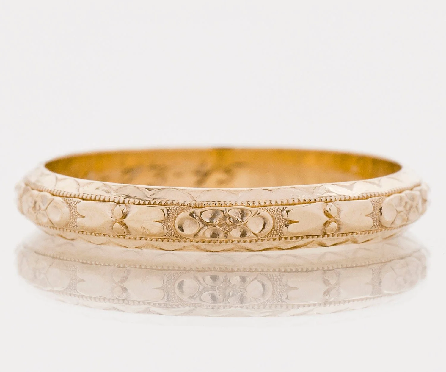 Antique 14k Rose Gold Wedding Band - Engraved Floral Milgrain, Size 10.75