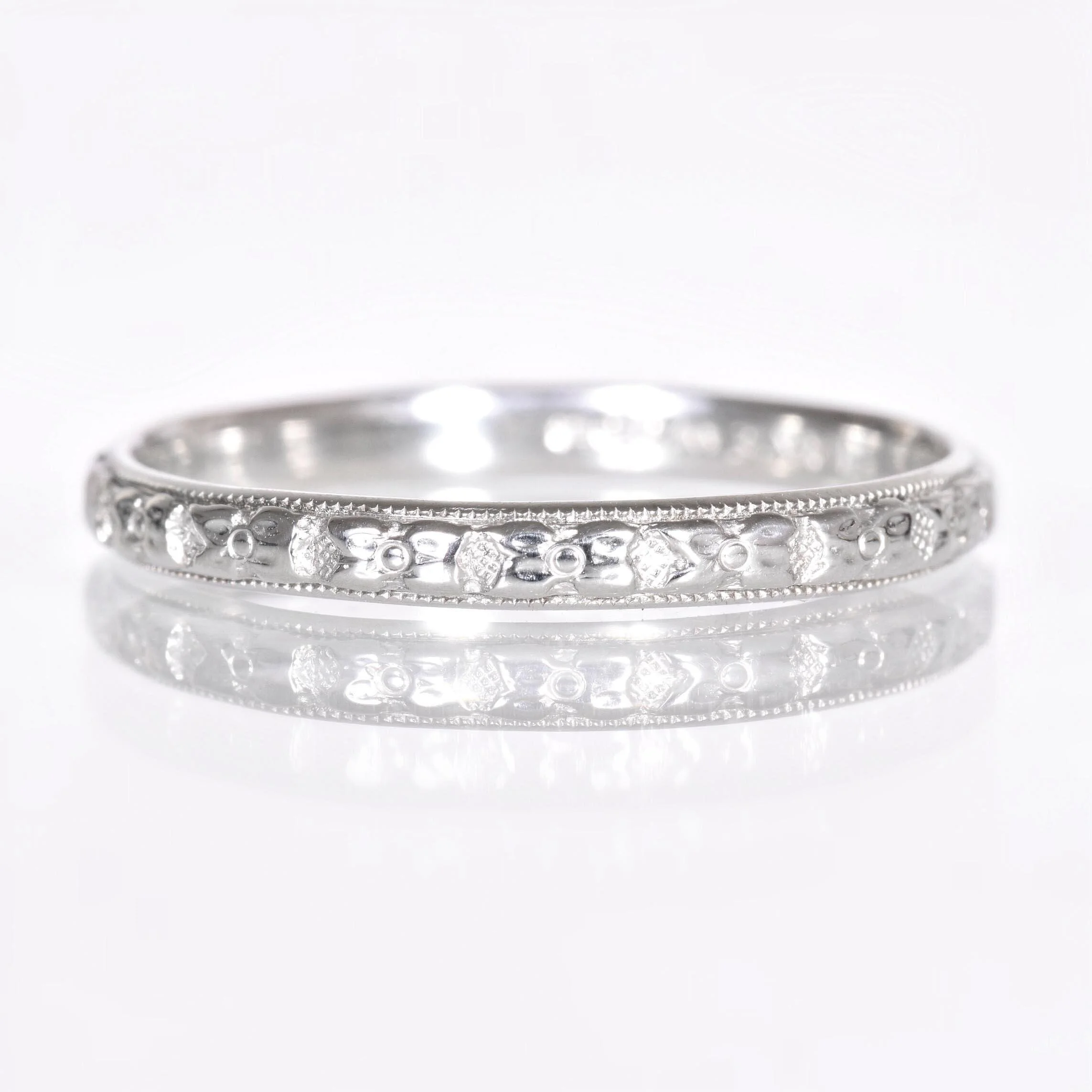 Antique 18k White Gold Floral Engraved Wedding Band - JR Woods