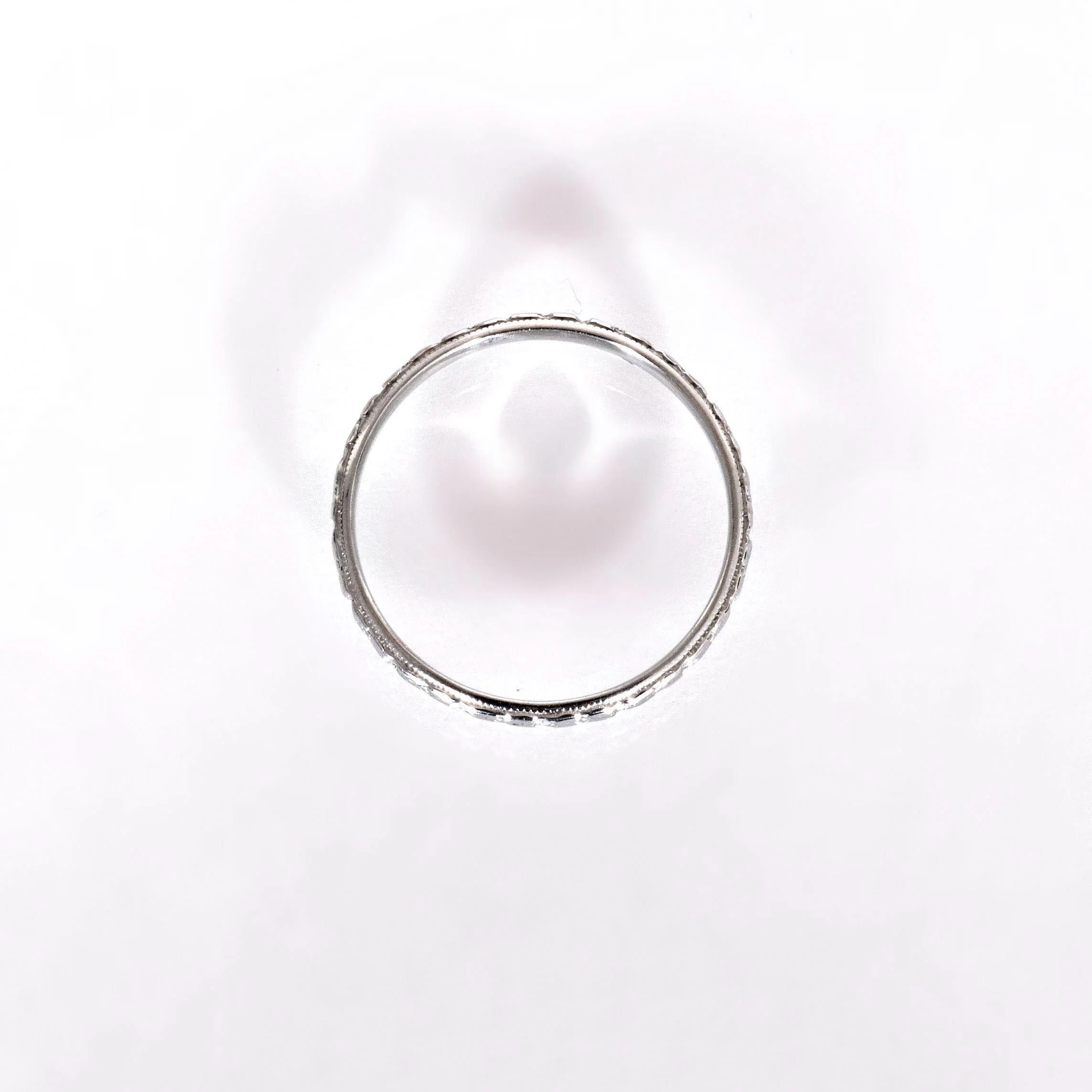 Antique 18k White Gold Floral Engraved Wedding Band - JR Woods