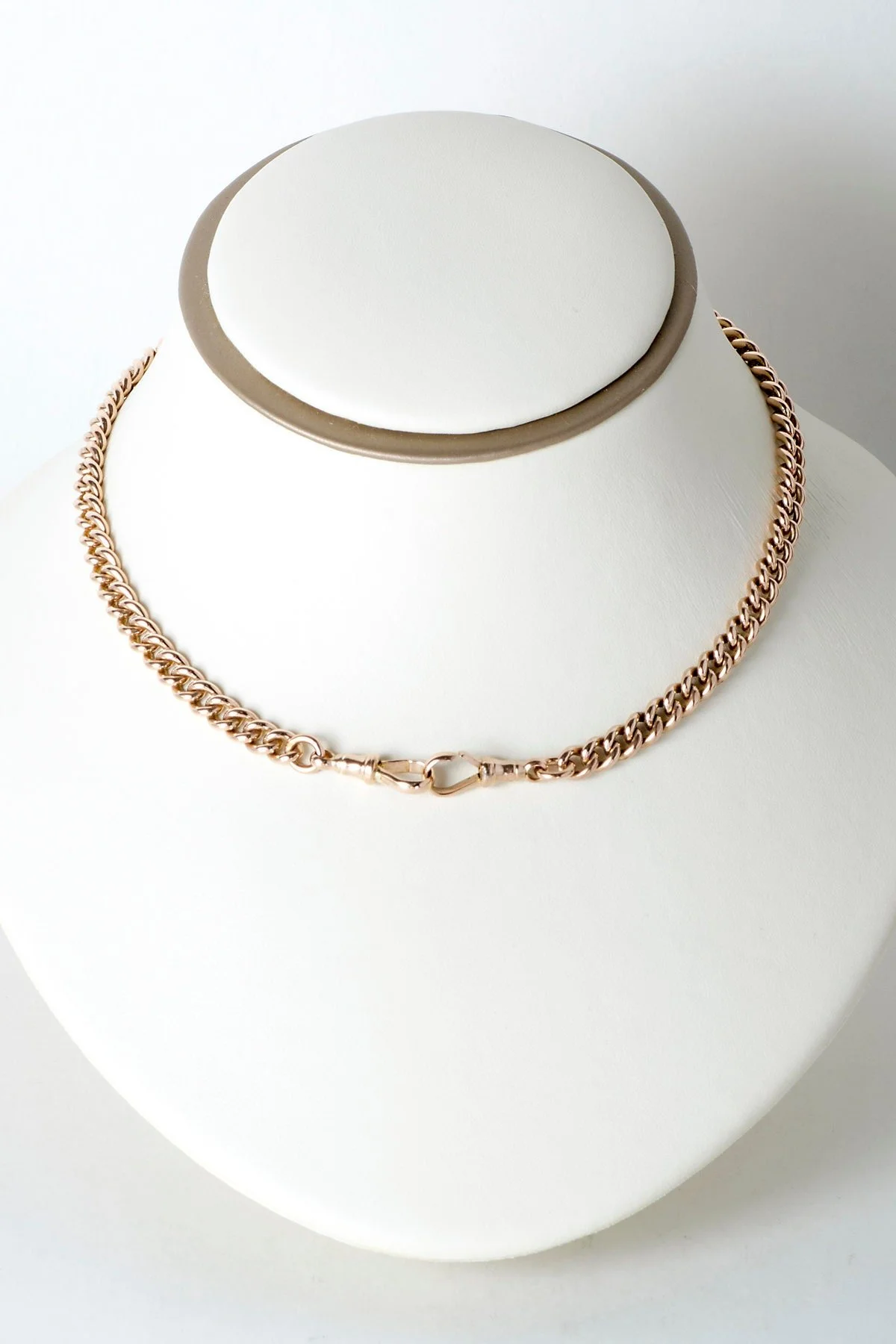 If you want to show off something so unique, pretty and antique, wear this beautiful turn of the century bright rose gold watch fob as a necklace! At 16.5" in length, for some it will dangle a bit and for others fit more like a choker. Watch fobs were originally developed in the 1770s and both men and women wore them connected to the waist or a vest so they could access their pocket watches. Today it would make a fabulous statement and conversation starter.