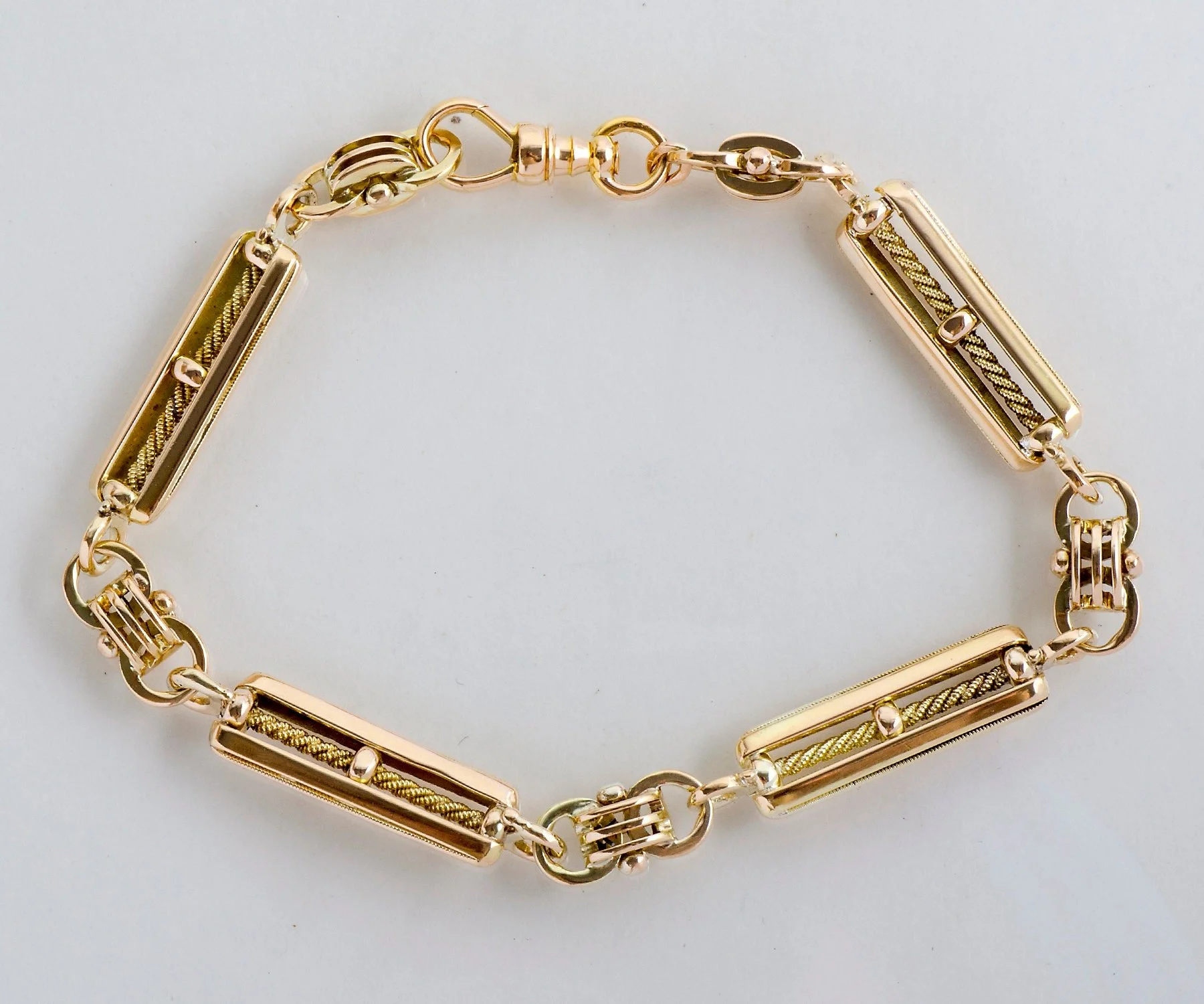 This 14k yellow gold antique Art Deco treasure was originally a watch fob which was converted into a fabulous men's bracelet. From the 1920's and in beautiful condition. Really could be enjoyed by either male or female.