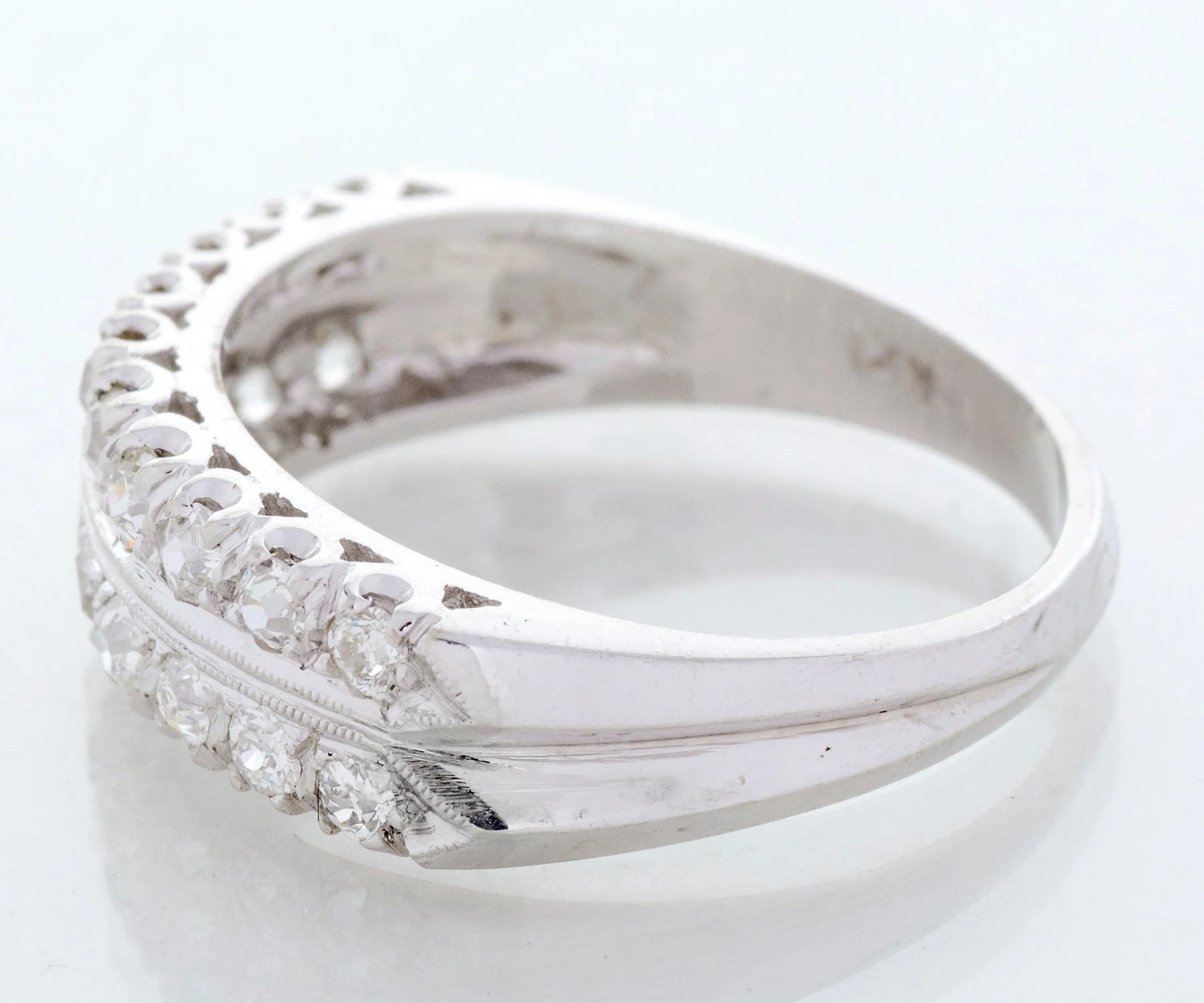 Antique Diamond Band - Antique 14k White Gold Double Row European Cut Diamond Band 14k White Gold 20 European Cut Diamonds =.80cts VS1-SI1/G-H Ring Size 8 (sizable) Band measures approximately 6.2mm wide at center, back of band is 2.7mm wide.
