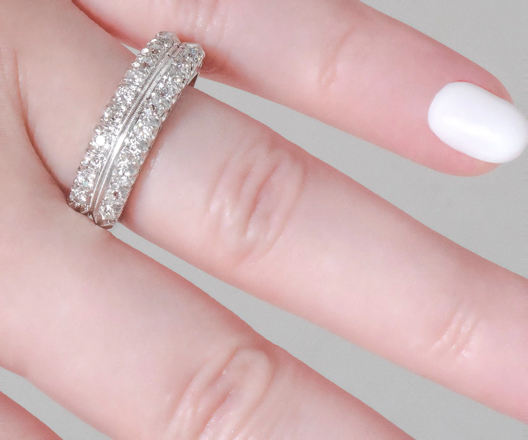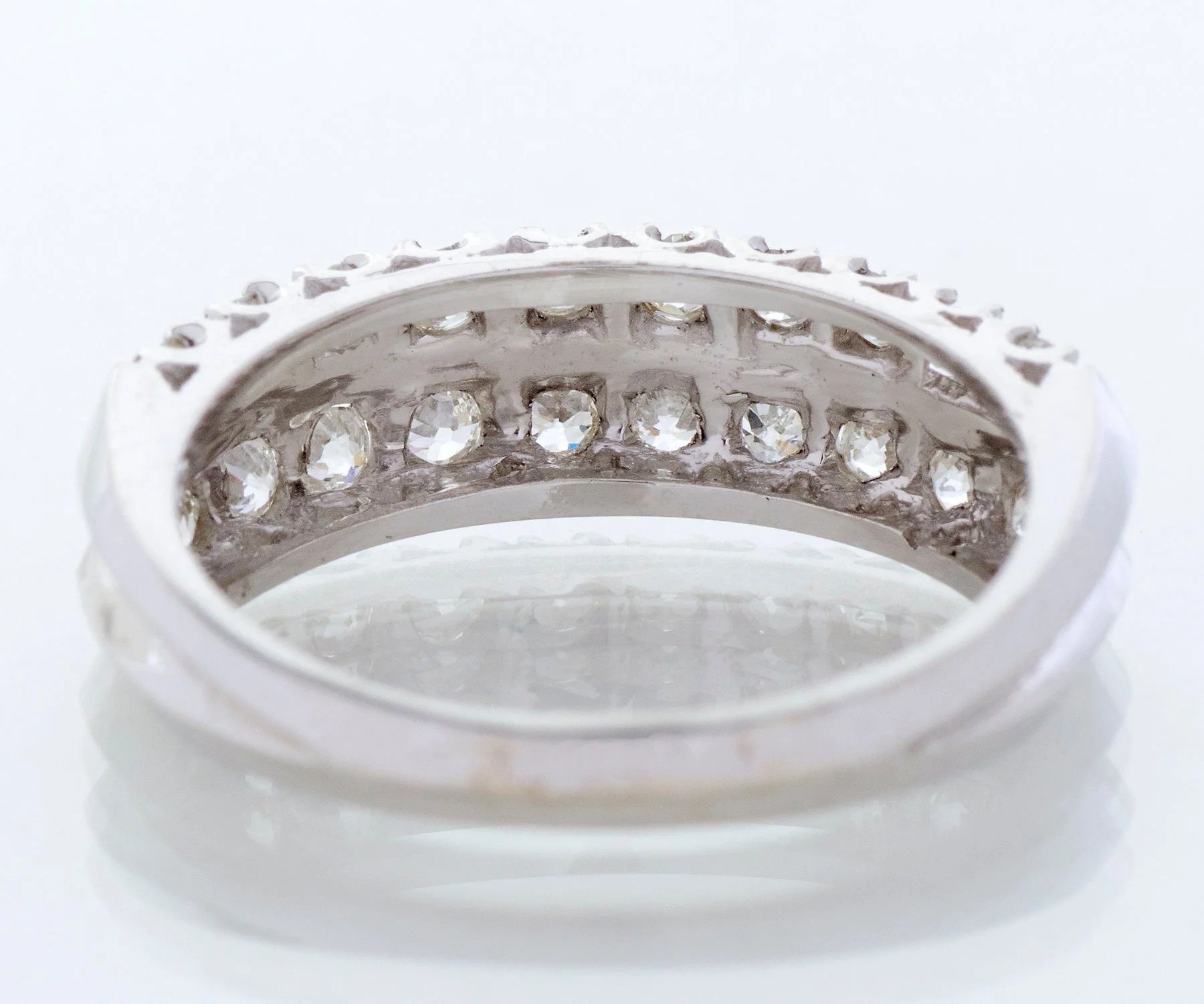 Antique Diamond Band - Antique 14k White Gold Double Row European Cut Diamond Band