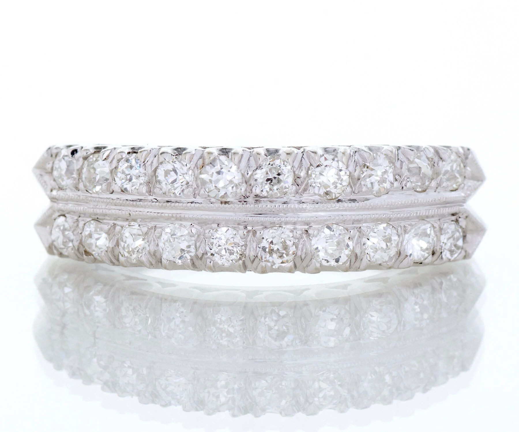Antique Diamond Band - Antique 14k White Gold Double Row European Cut Diamond Band