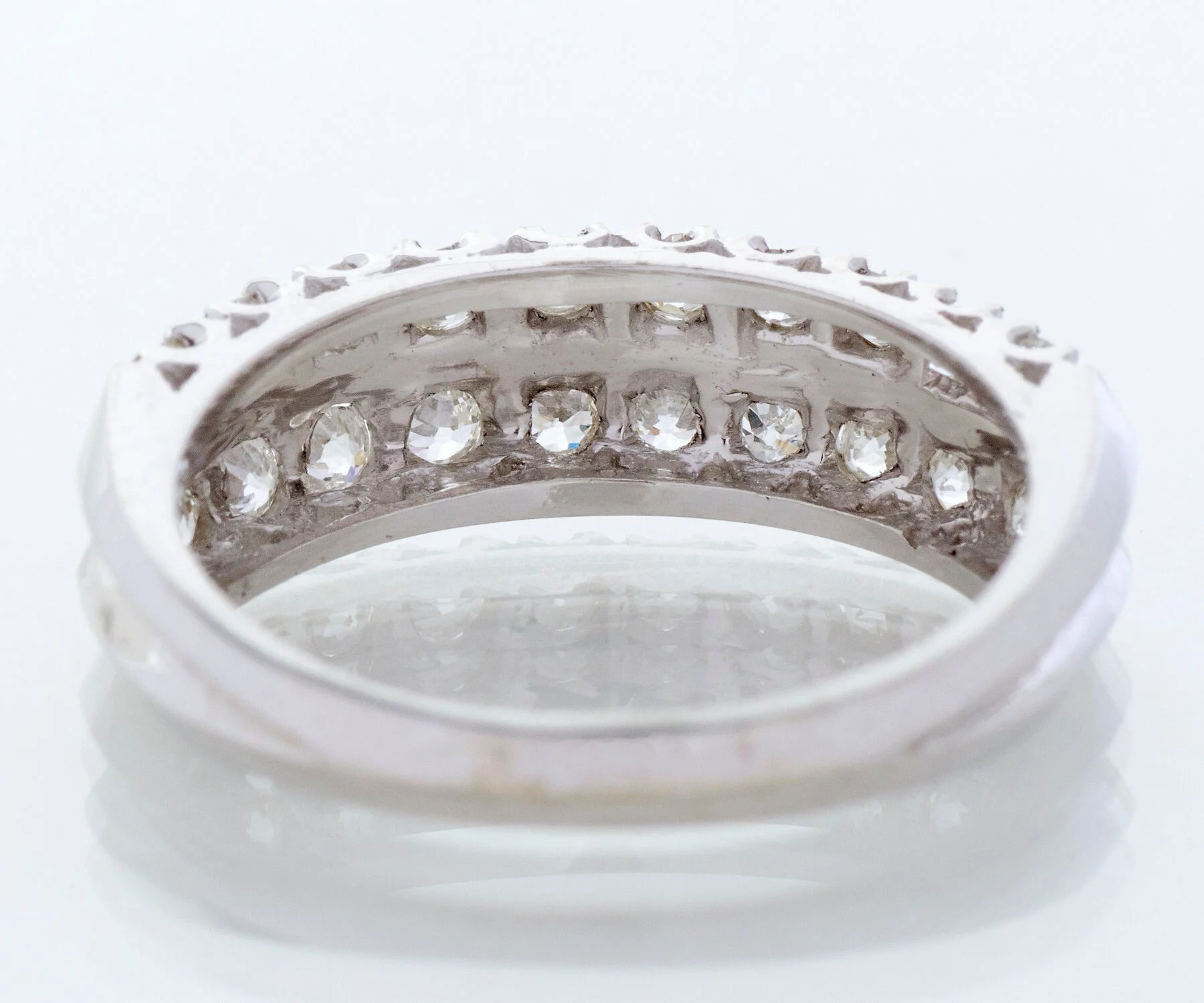 Antique Diamond Band - Antique 14k White Gold Double Row European Cut Diamond Band 14k White Gold 20 European Cut Diamonds =.80cts VS1-SI1/G-H Ring Size 8 (sizable) Band measures approximately 6.2mm wide at center, back of band is 2.7mm wide.