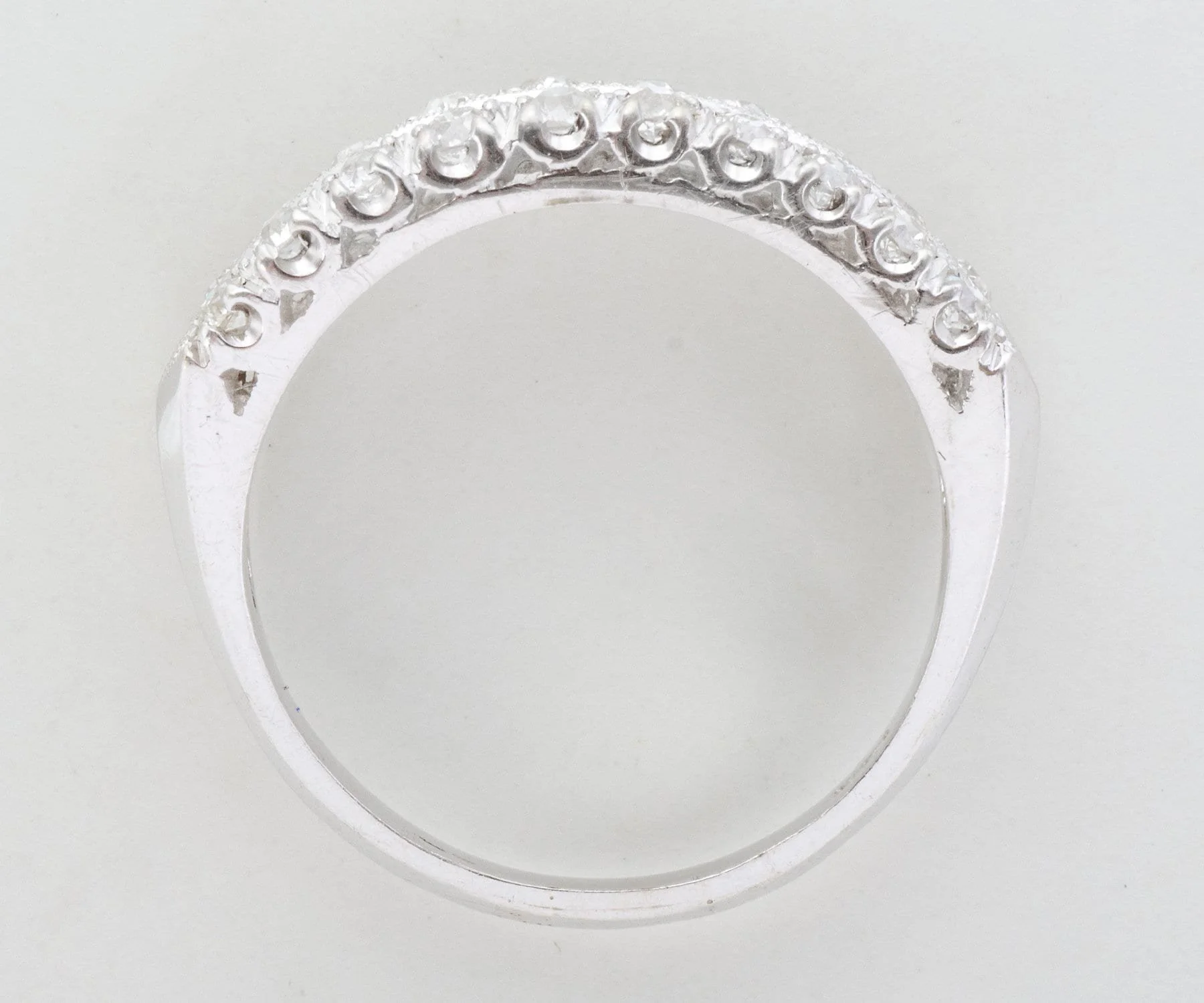 Antique Diamond Band - Antique 14k White Gold Double Row European Cut Diamond Band