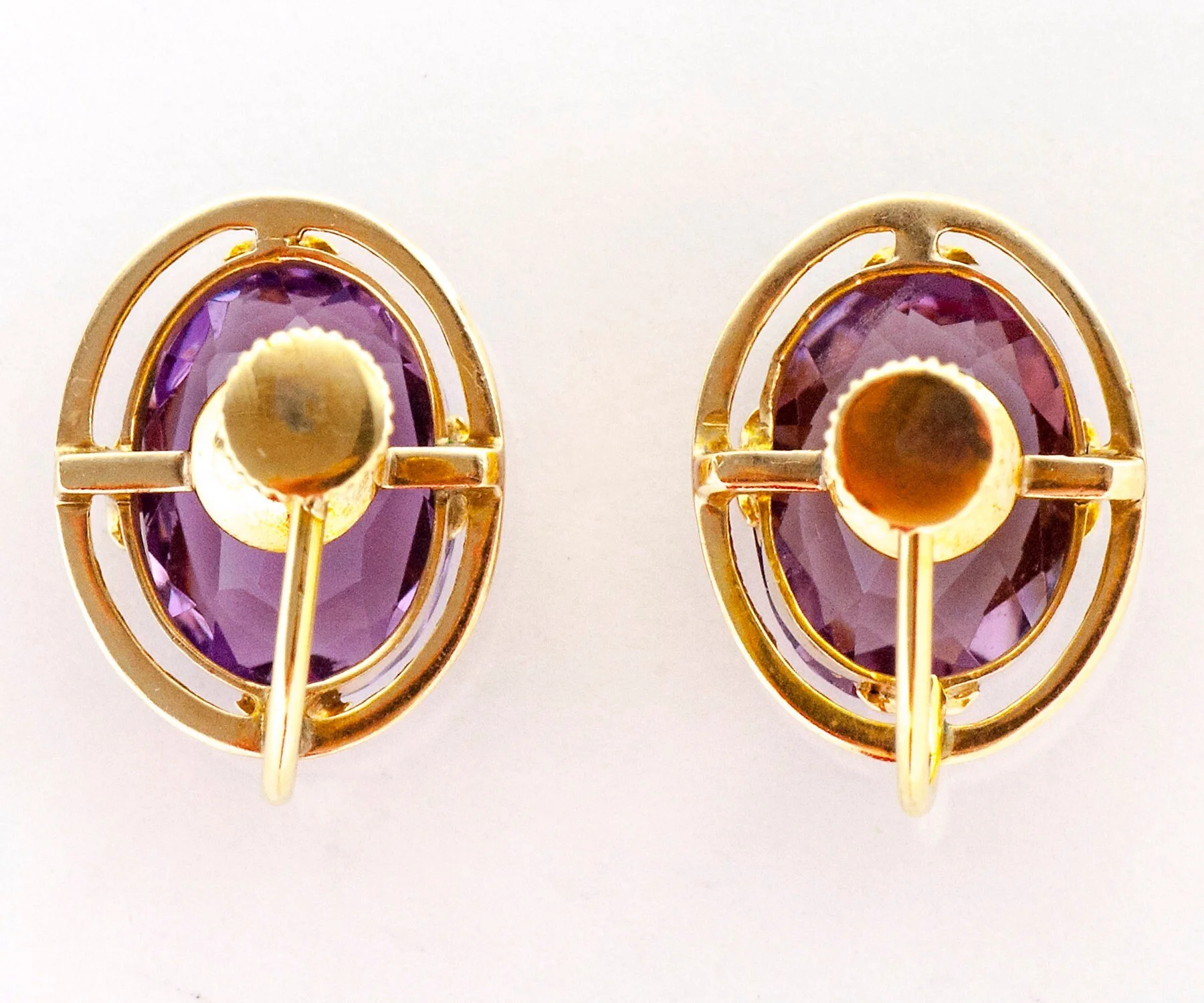 Antique Earrings - Antique 14k Yellow Gold Amethyst Screw-Back Earrings