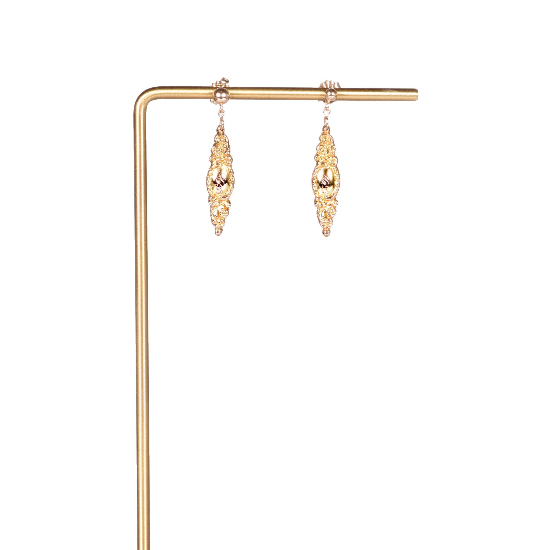 Antique Earrings - Antique 14k Yellow Gold Lingerie Pin Conversion Earrings