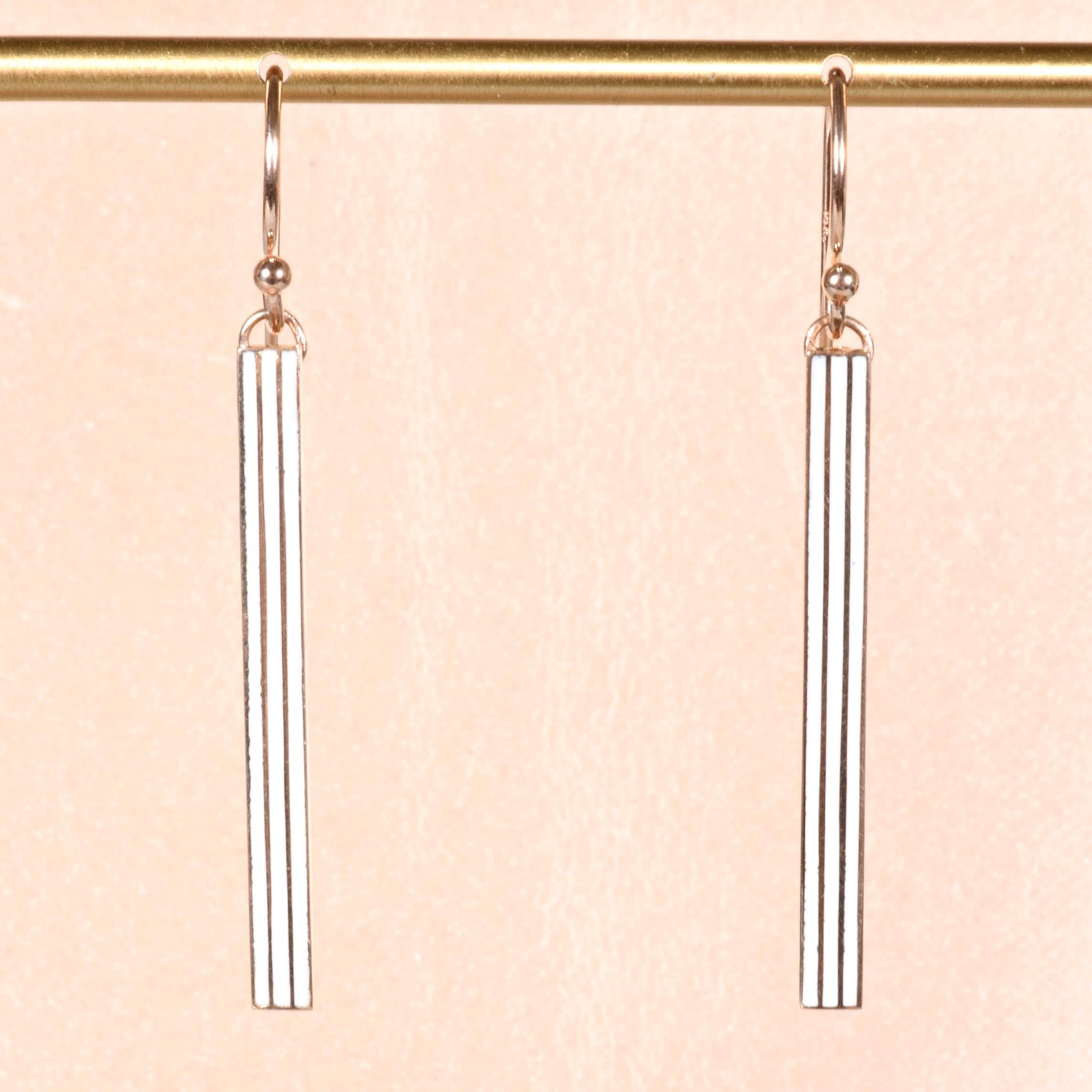 Antique Earrings - Antique Art Nouveau 14k Yellow Gold Enamel Lingerie Pin Conversion Earrings Circa 1900 14k Yellow Gold White Enamel Earrings measures approximately 1.25" long.