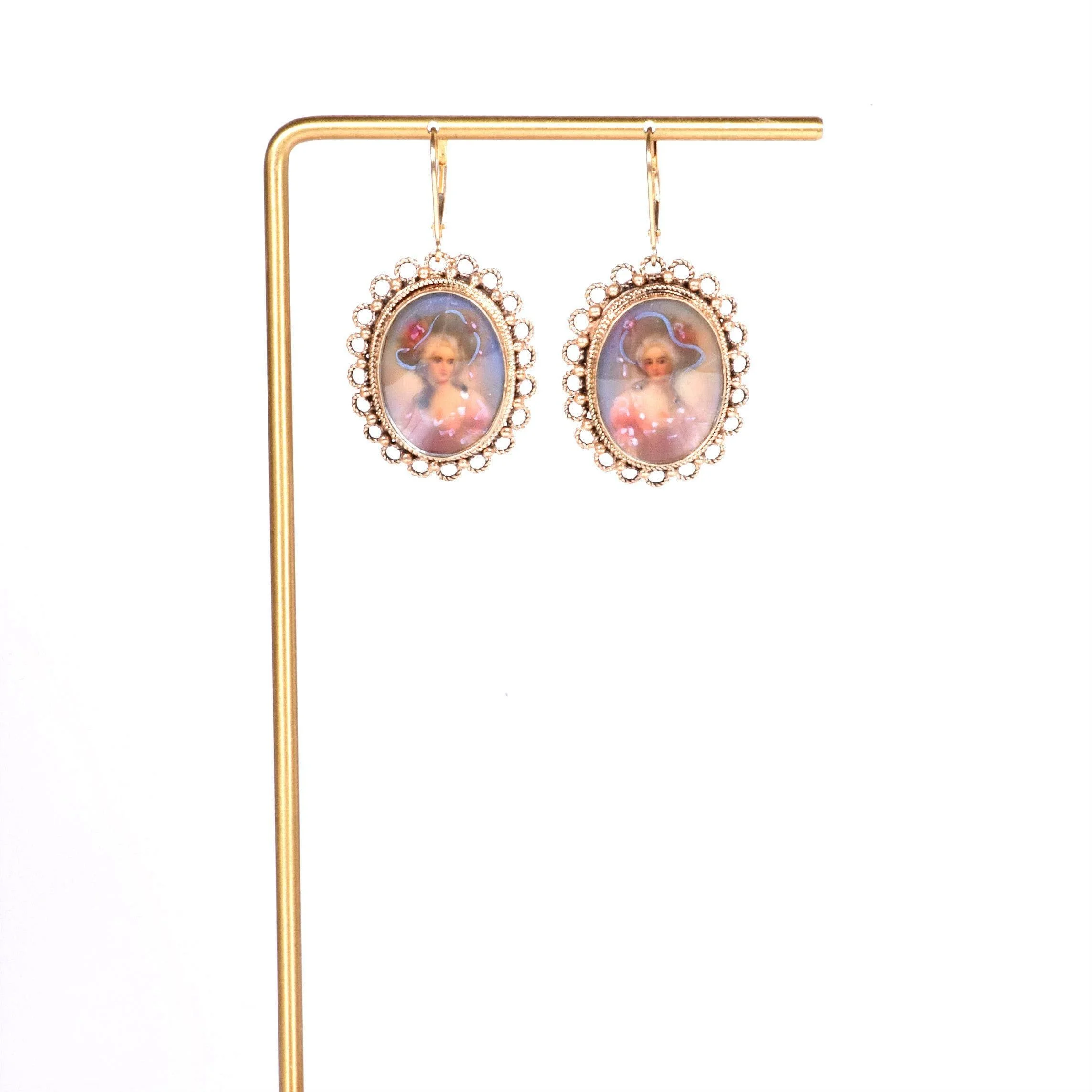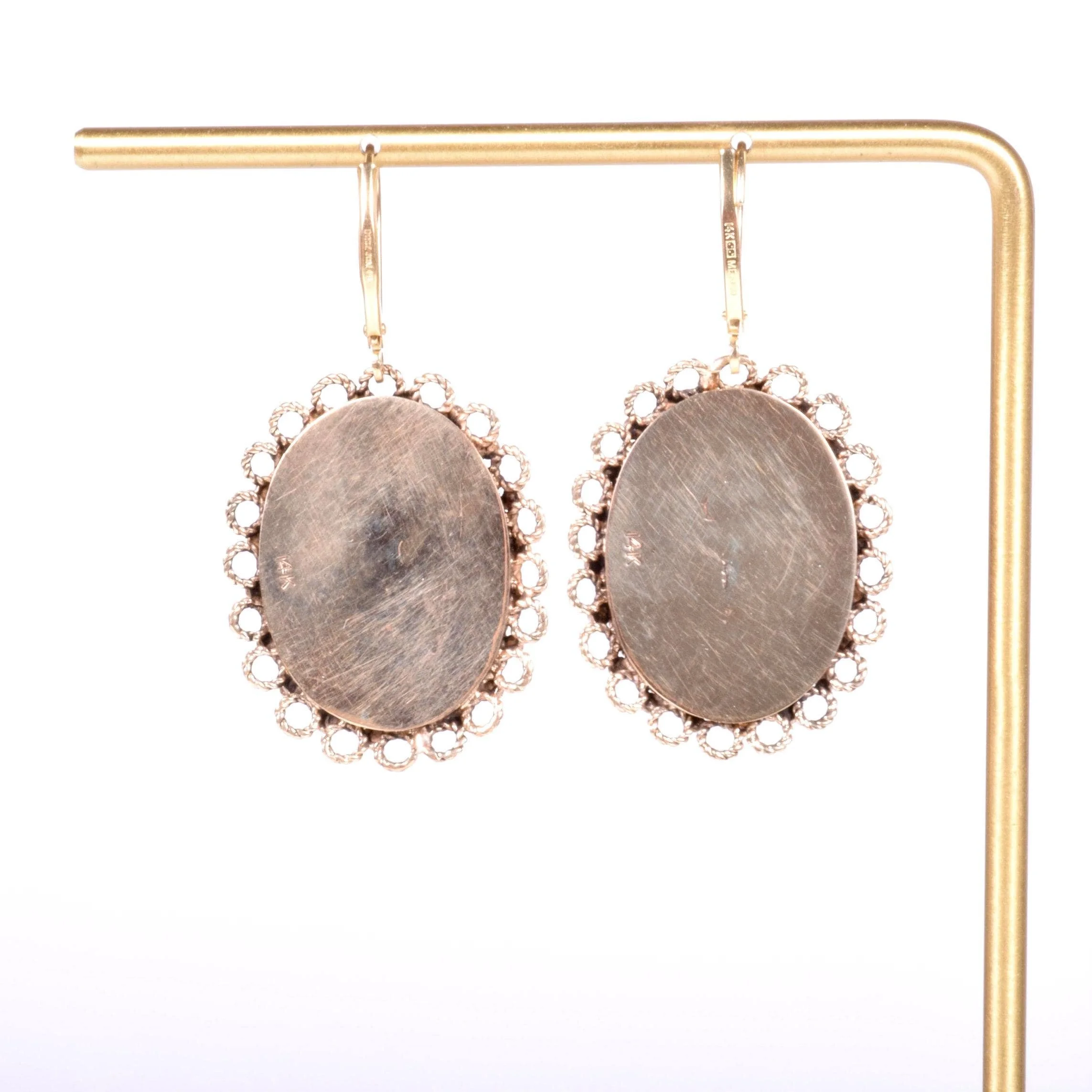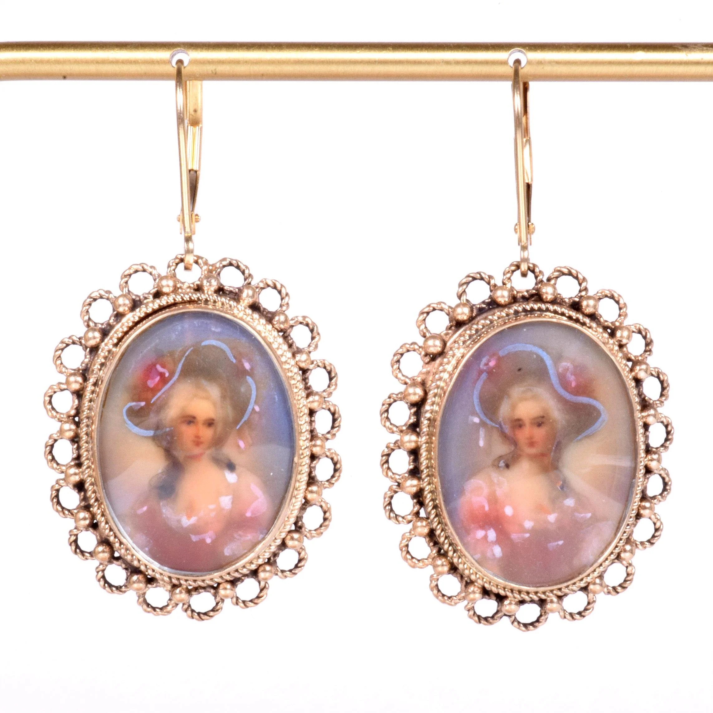 Antique Earrings - Antique Victorian 14k Gold Hand Painted Portrait Earrings Circa late 1800's 14k Yellow Gold Hand Painted Earrings measure approximately 1" long (without top) and just over 3/4" wide.