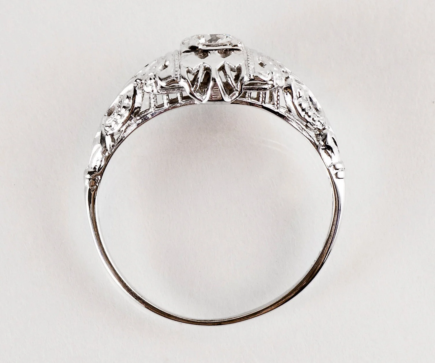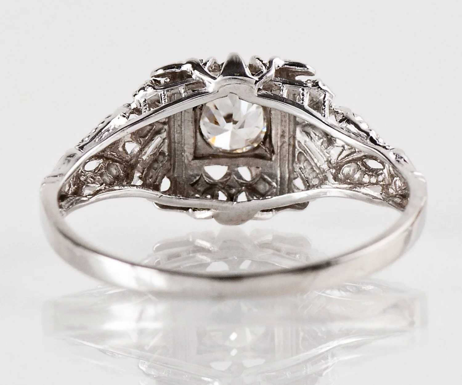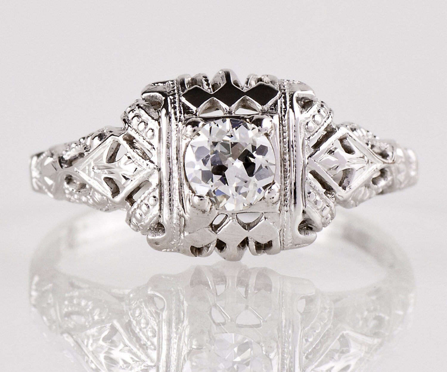 Antique Edwardian 18K White Gold Filigree Diamond Engagement Ring