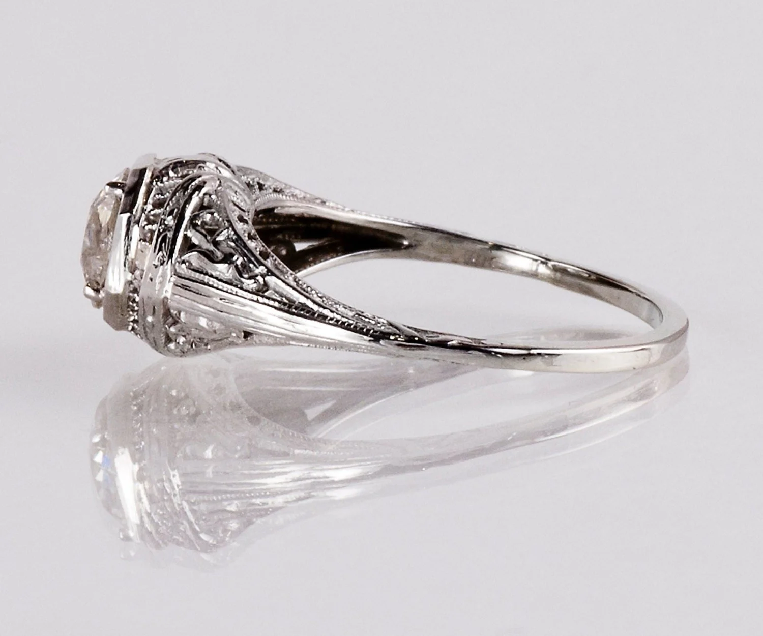 Antique Edwardian Diamond Engagement Ring: 18K White Gold Filigree