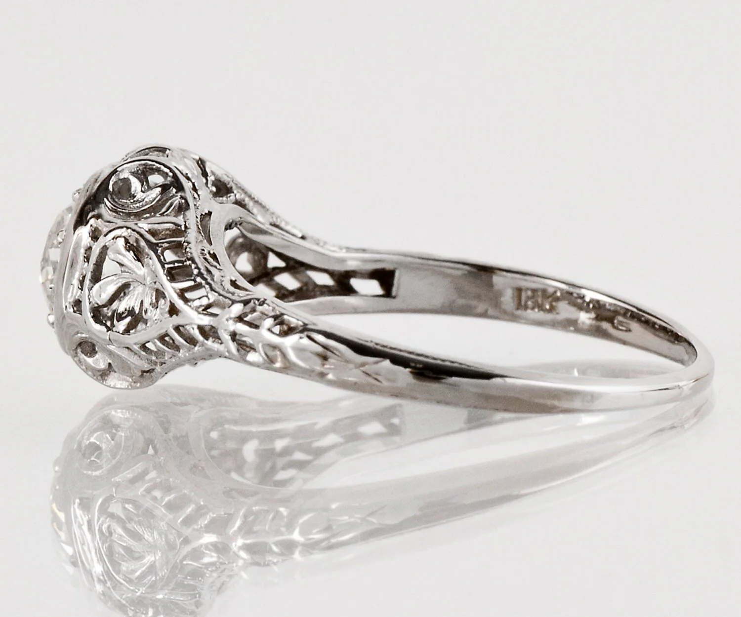 Antique Enagement Ring - Antique Arts & Crafts Era 18k White Gold Filigree Diamond Enagagement Ring