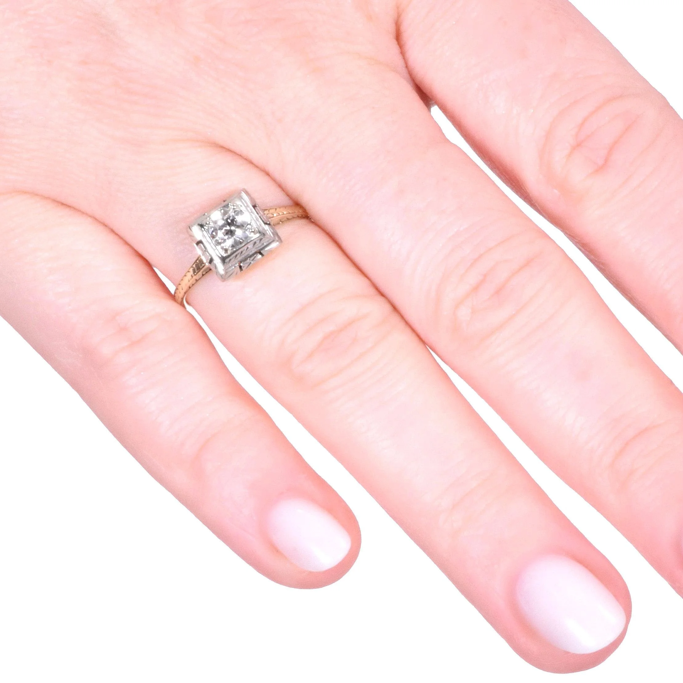 Antique Engagement Ring- Antique 14k Two-Tone Diamond Engagement Ring