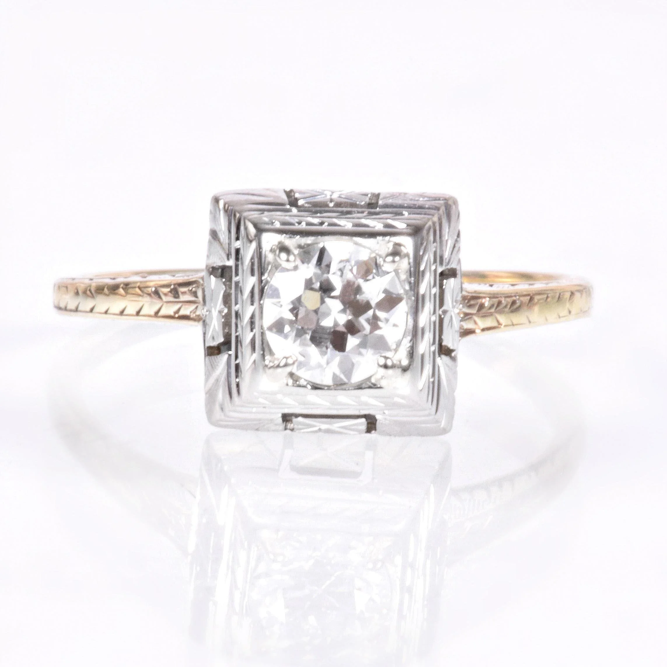 Antique Engagement Ring- Antique 14k Two-Tone Diamond Engagement Ring