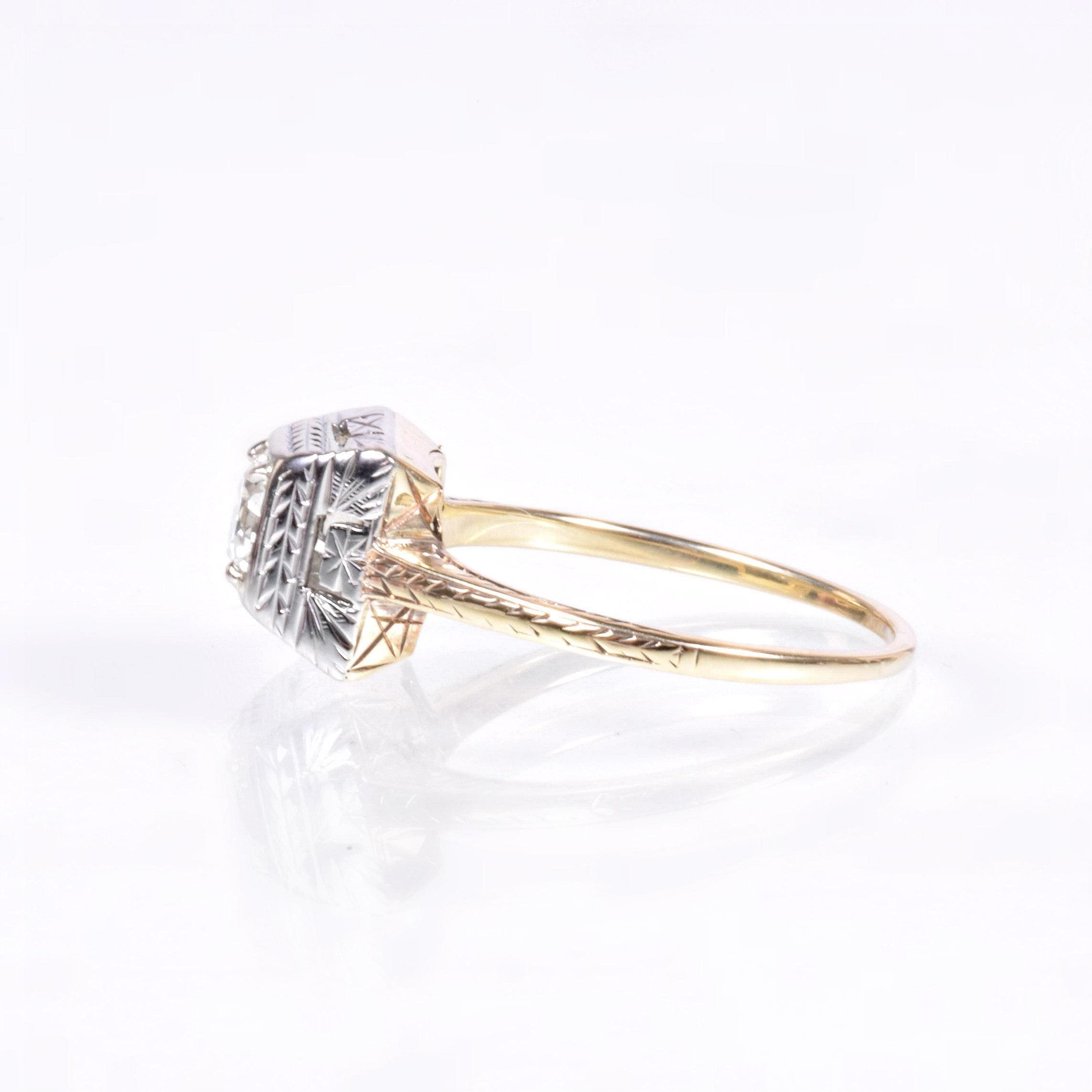 Antique Engagement Ring- Antique 14k Two-Tone Diamond Engagement Ring