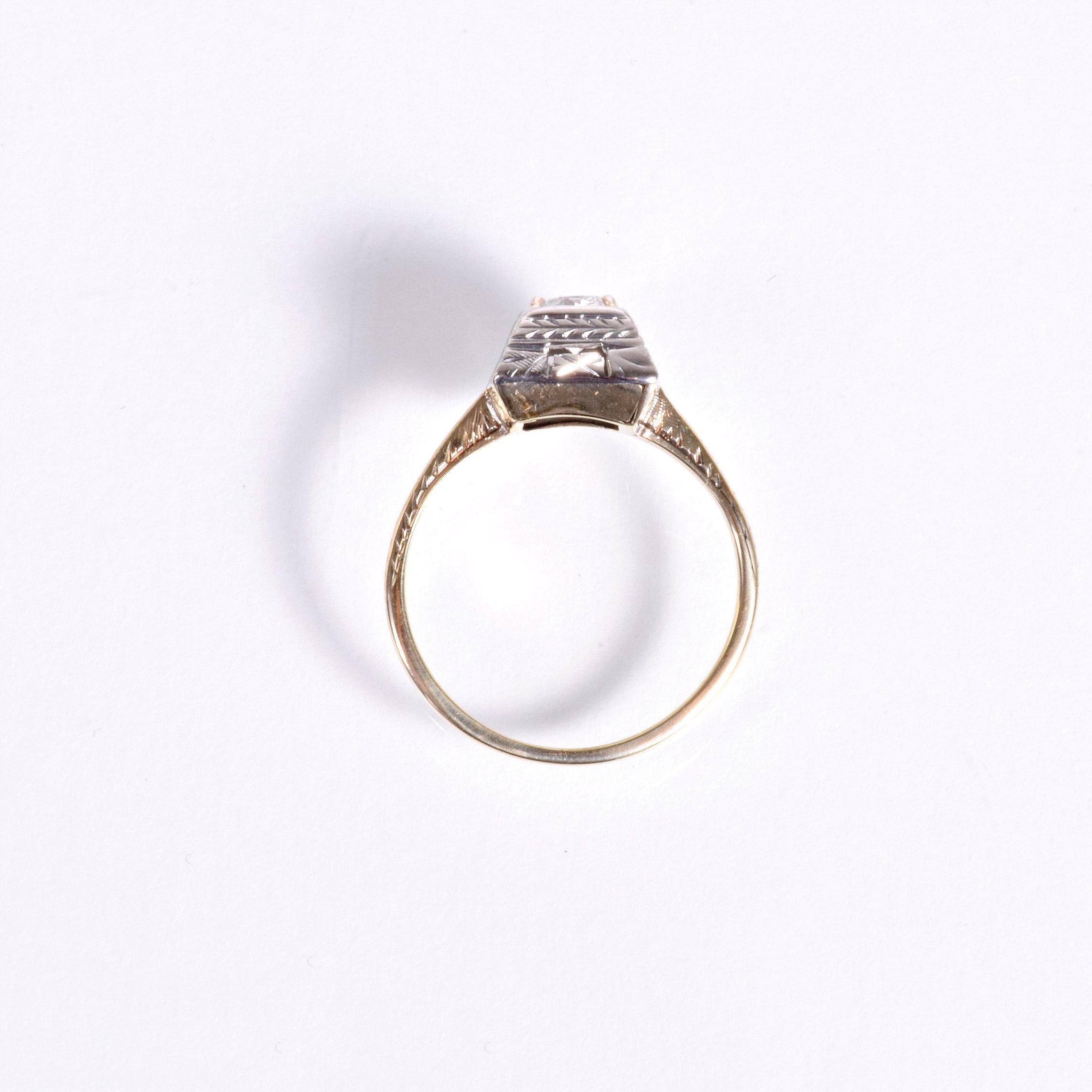 Antique Engagement Ring- Antique 14k Two-Tone Diamond Engagement Ring Circa 1910's-20's 14k Yellow & White Gold European Cut Diamond =.40ct SI1/G Ring Size 6 (sizable) Ring measures approximately 8.2mm wide at center, back of band is 1mm wide.