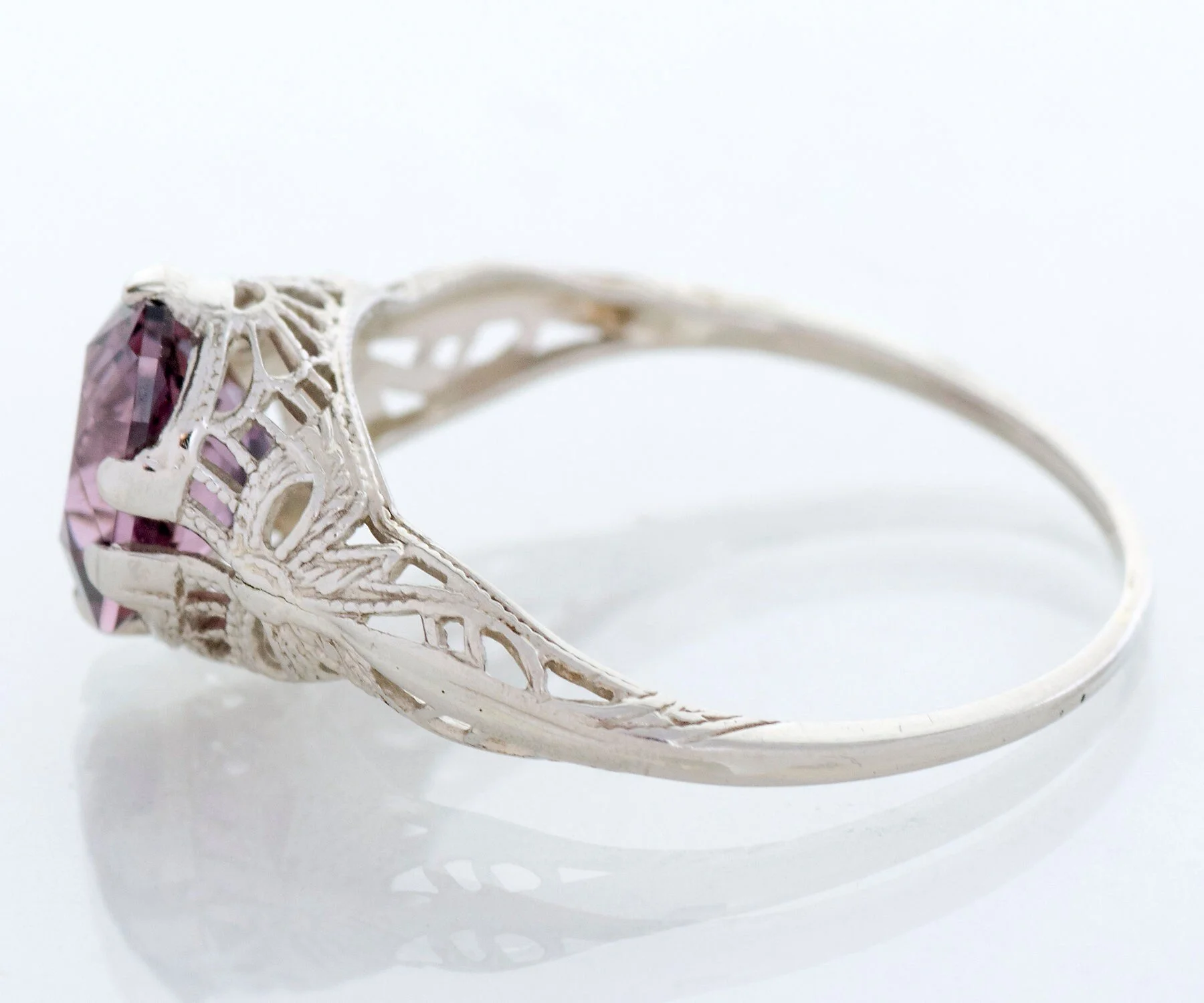 Antique Engagement Ring - Antique 14k White Gold 1.58ct Spinel Filigree Ring
