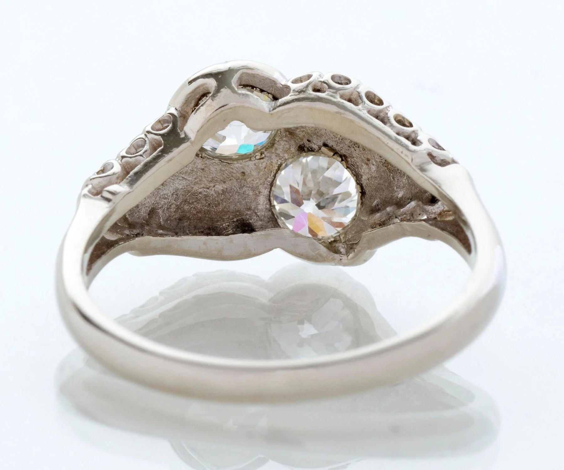Antique Engagement Ring - Antique 14k White Gold Toi-Et-Moi Diamond Ring Art Deco 14k White Gold 2 European Cut Diamonds =1.12ct VS1-SI1/G Ring Size 7 3/4 (sizable) Ring measures approximately 10.6mm, back of band is 2mm wide.