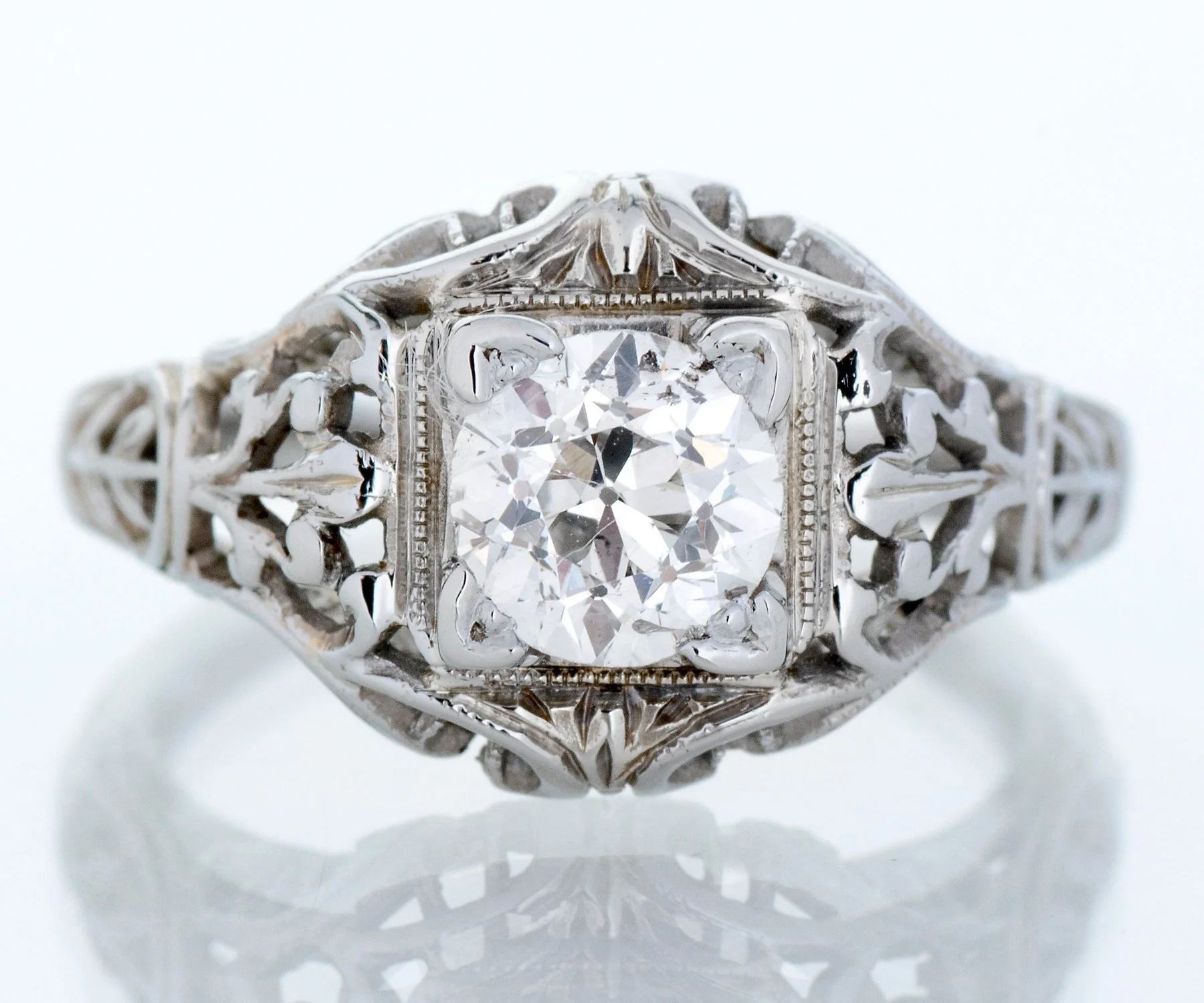 Antique Engagement Ring - Antique 18k White Gold "1935" Diamond Engagement Ring