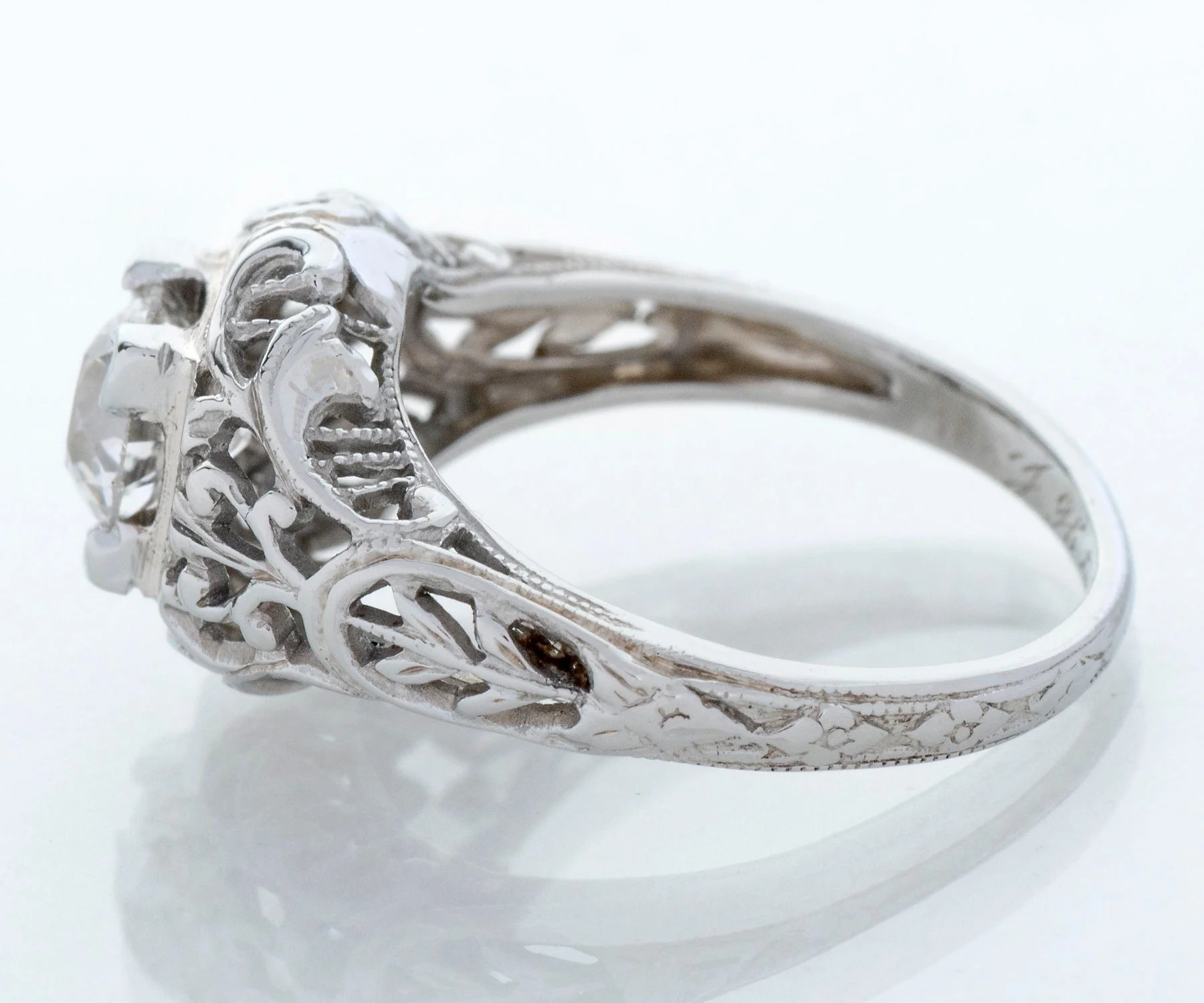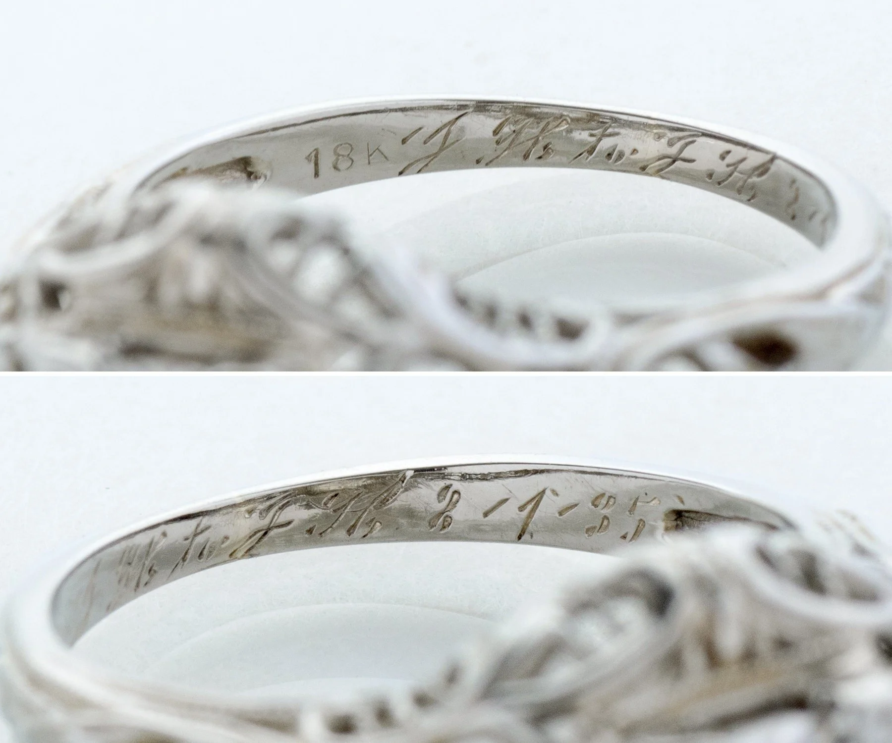 Antique Engagement Ring - Antique 18k White Gold "1935" Diamond Engagement Ring 18k White Gold European Cut Diamond =.75ct SI2/F Engraved "J.H. to J.H. 2-1-35" Ring Size 4.5 (sizable) Ring measures approximately 10.7mm wide at center, back of band is 1.9mm wide.