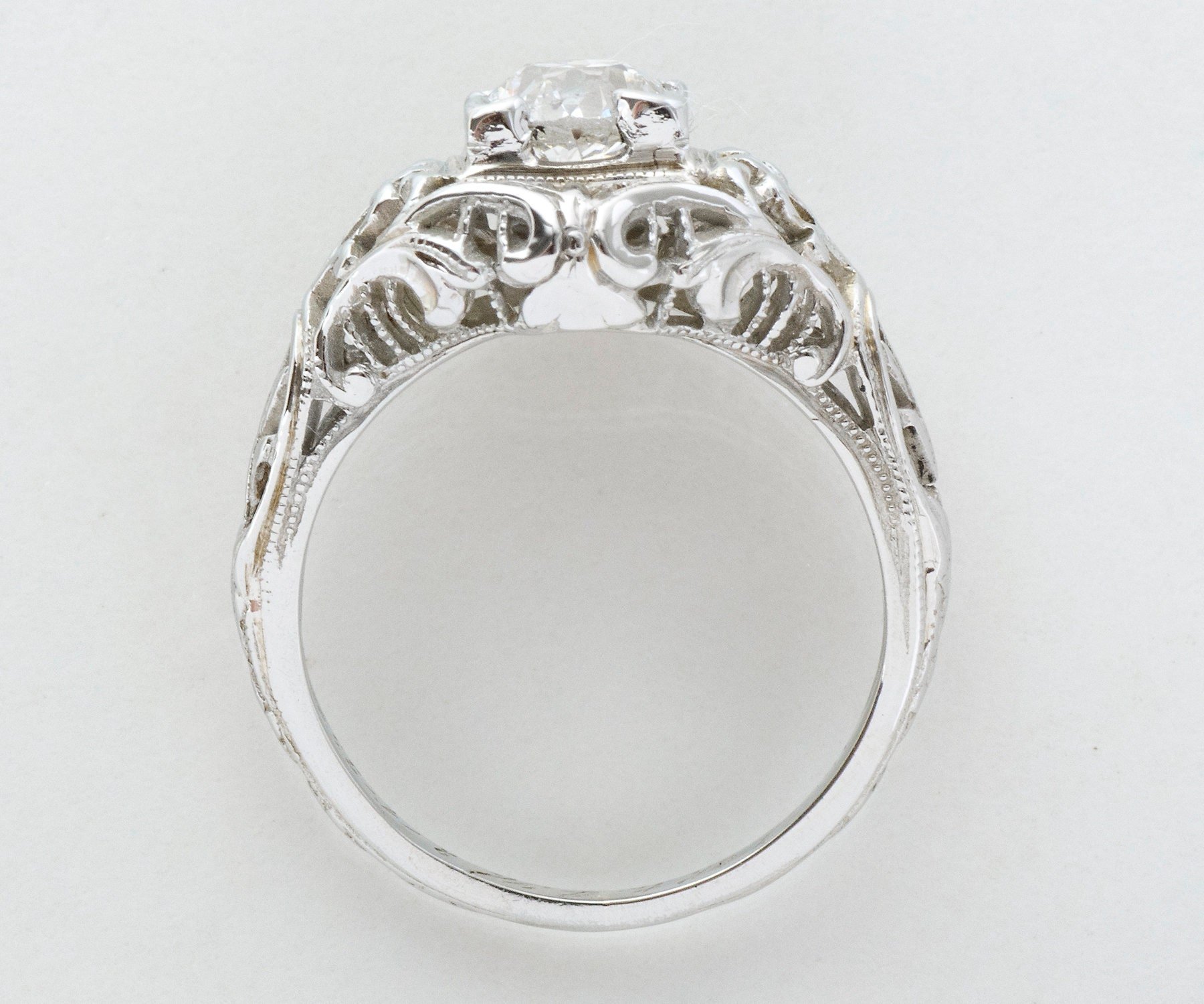 Antique Engagement Ring - Antique 18k White Gold "1935" Diamond Engagement Ring 18k White Gold European Cut Diamond =.75ct SI2/F Engraved "J.H. to J.H. 2-1-35" Ring Size 4.5 (sizable) Ring measures approximately 10.7mm wide at center, back of band is 1.9mm wide.