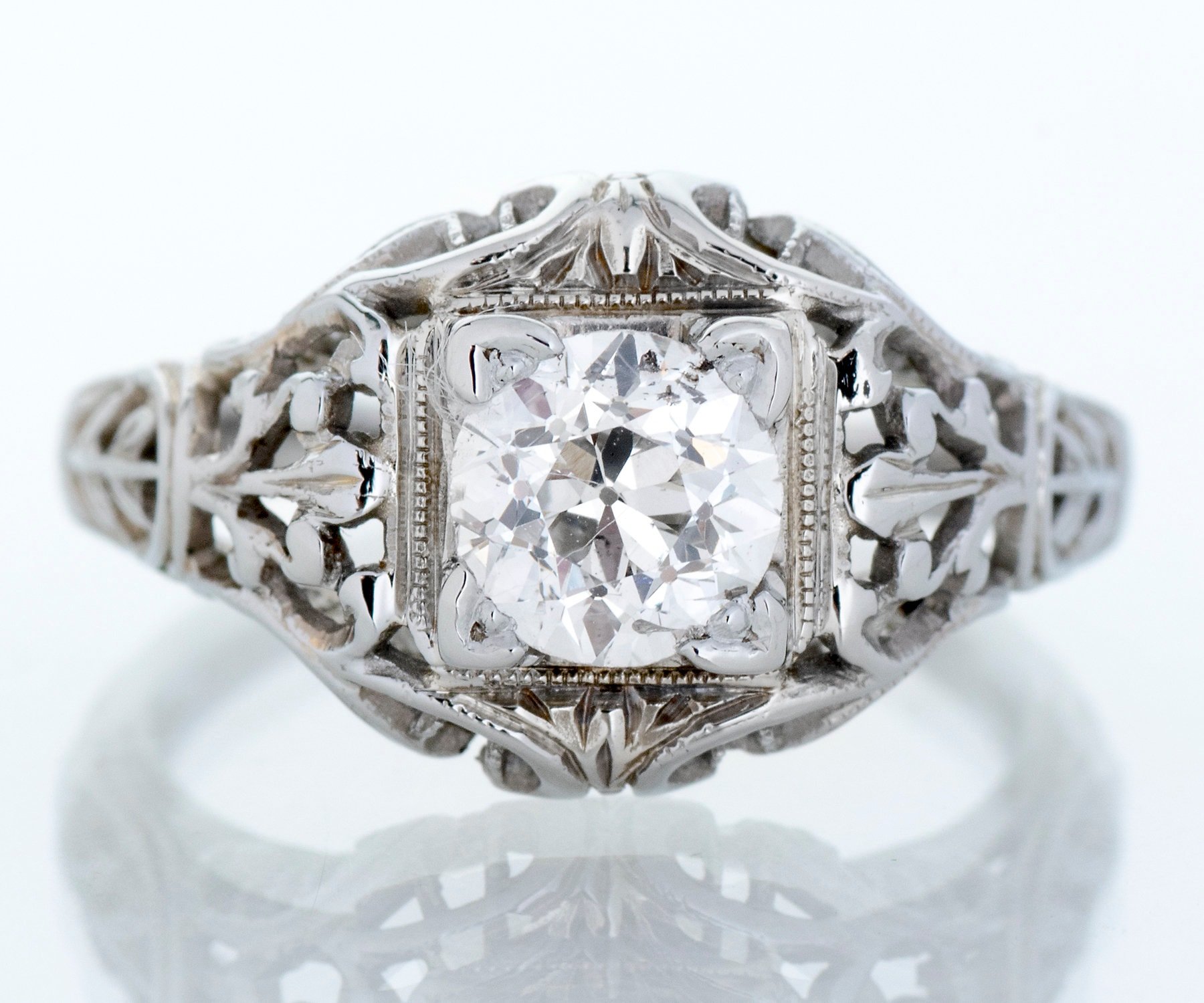 Antique Engagement Ring - Antique 18k White Gold "1935" Diamond Engagement Ring