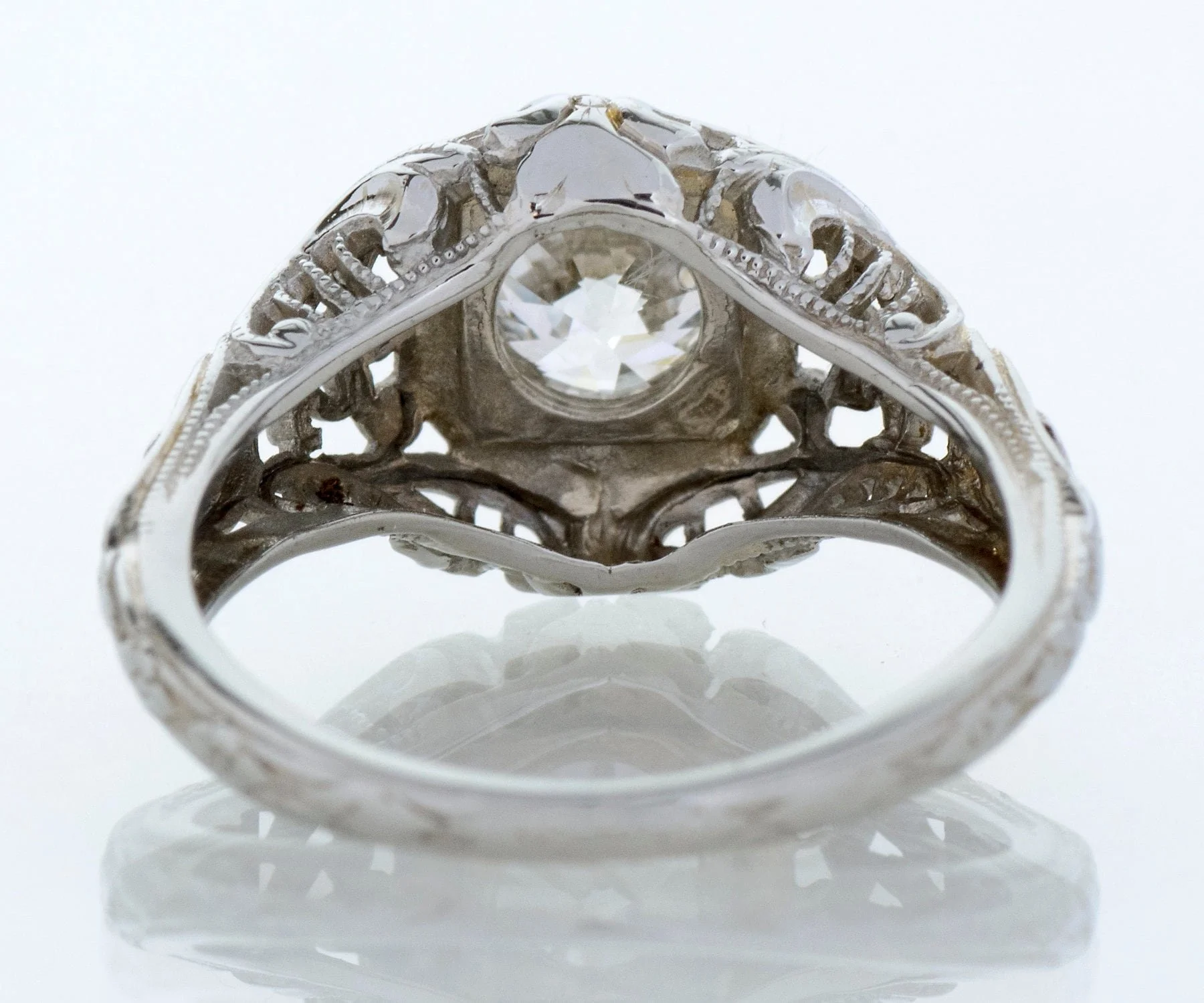 Antique Engagement Ring - Antique 18k White Gold "1935" Diamond Engagement Ring 18k White Gold European Cut Diamond =.75ct SI2/F Engraved "J.H. to J.H. 2-1-35" Ring Size 4.5 (sizable) Ring measures approximately 10.7mm wide at center, back of band is 1.9mm wide.