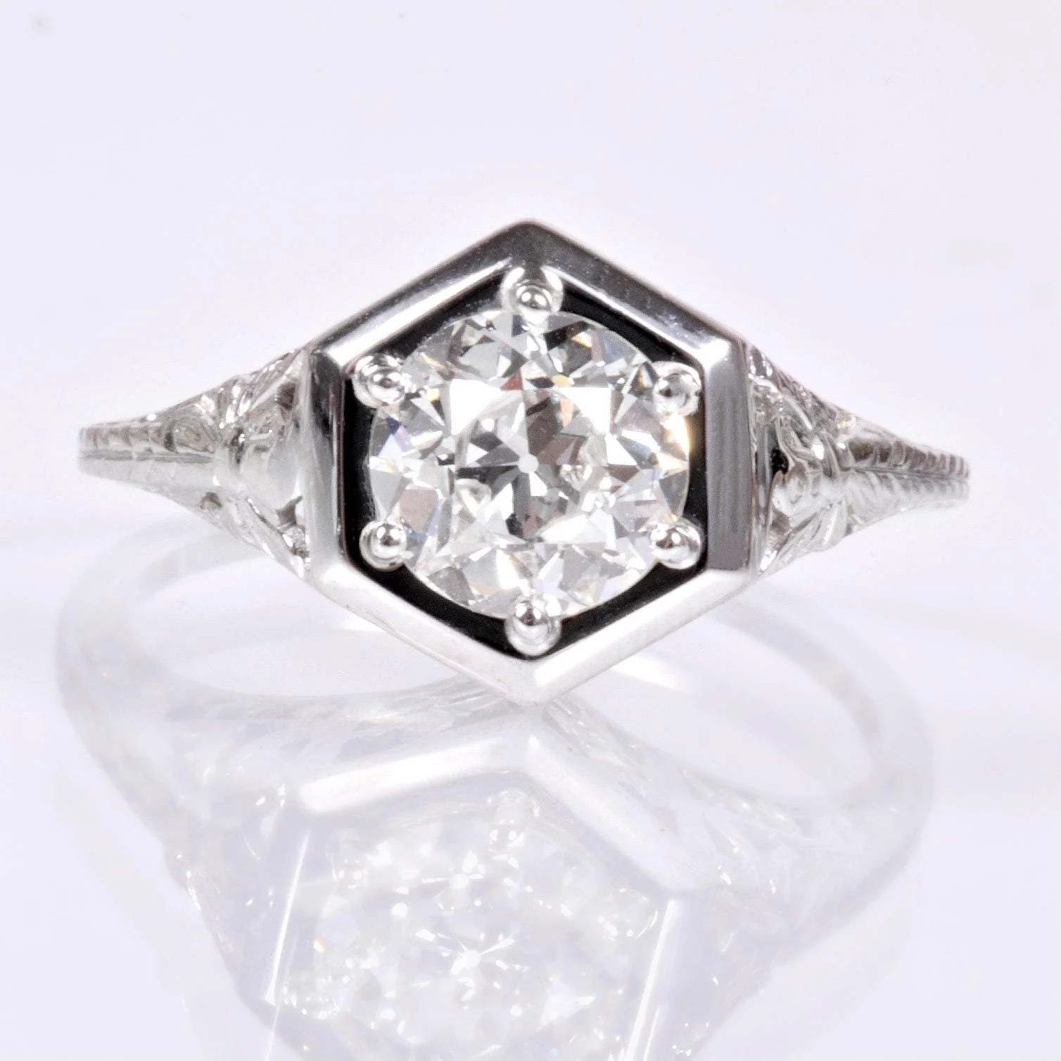 Antique Engagement Ring - Antique 18k White Gold 1ct European Cut Diamond Ring