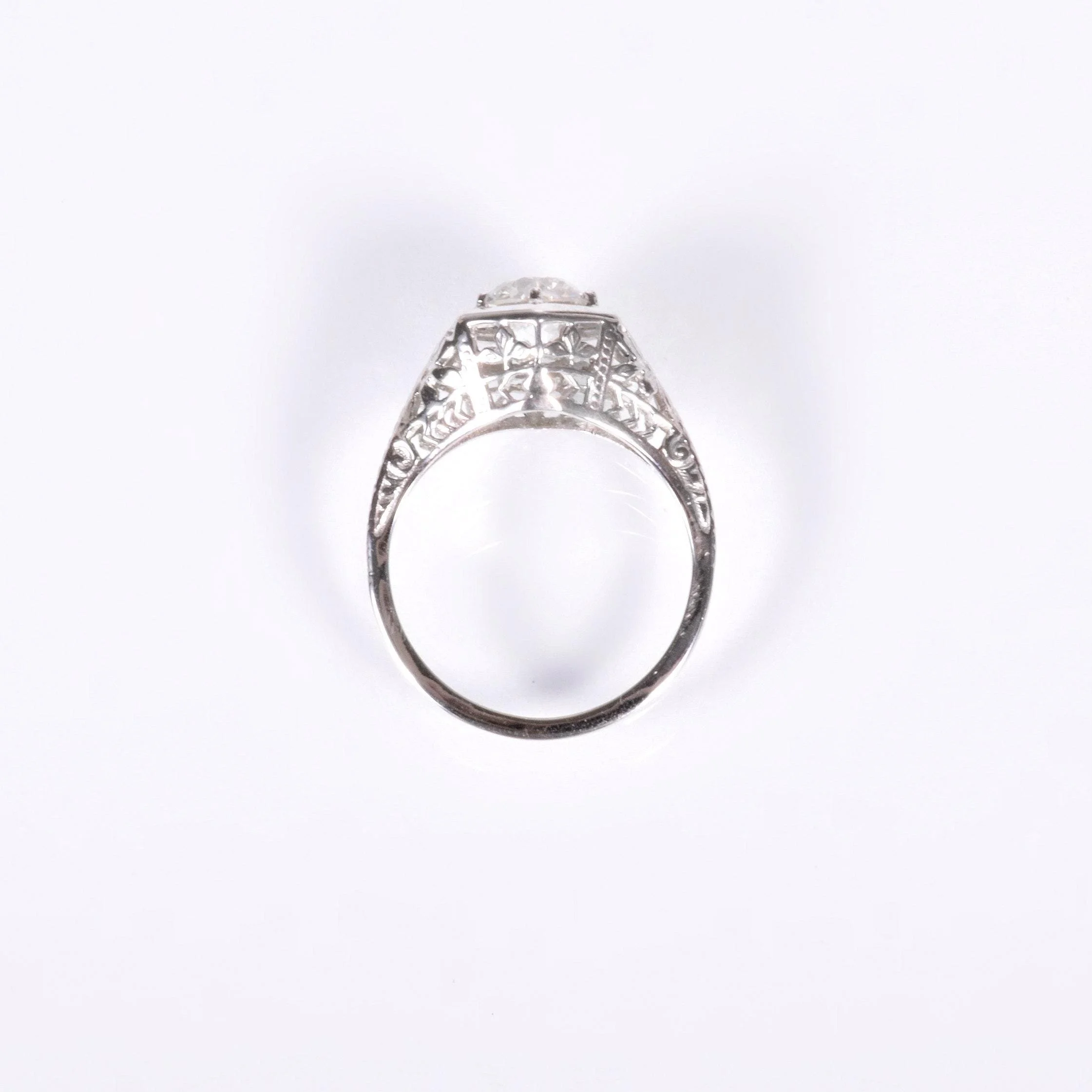 Antique Engagement Ring - Antique 18k White Gold 1ct European Cut Diamond Ring Circa 1910's- early 20's 18k White Gold Old European Cut Diamond =1.00ct VS2/I (GIA Certified) Ring Size 5.5 (sizable) Ring measures approximately 9.8mm wide at center, back of band is 1mm wide.