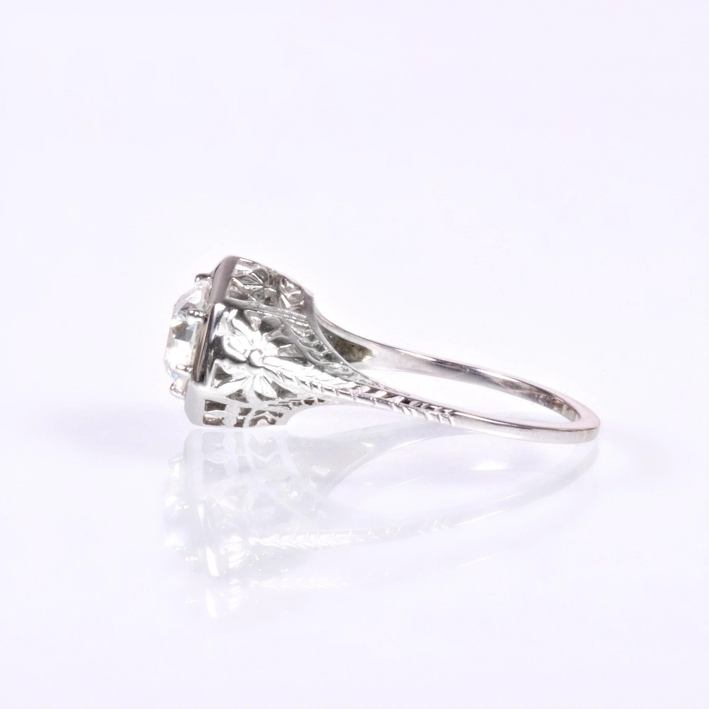 Antique Engagement Ring - Antique 18k White Gold 1ct European Cut Diamond Ring