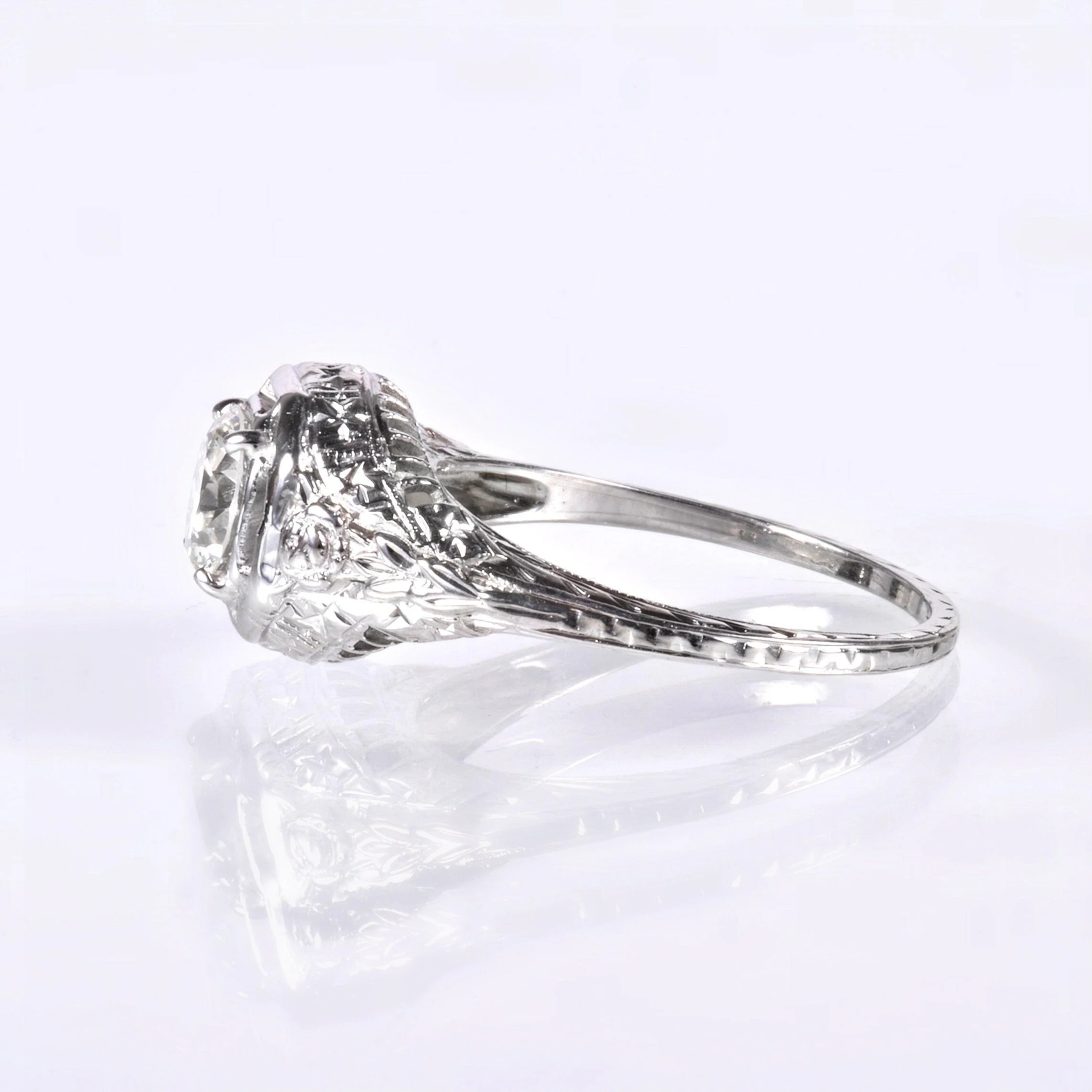 Antique Engagement Ring - Antique 18k White Gold .89ct Old European Cut Diamond Engagement