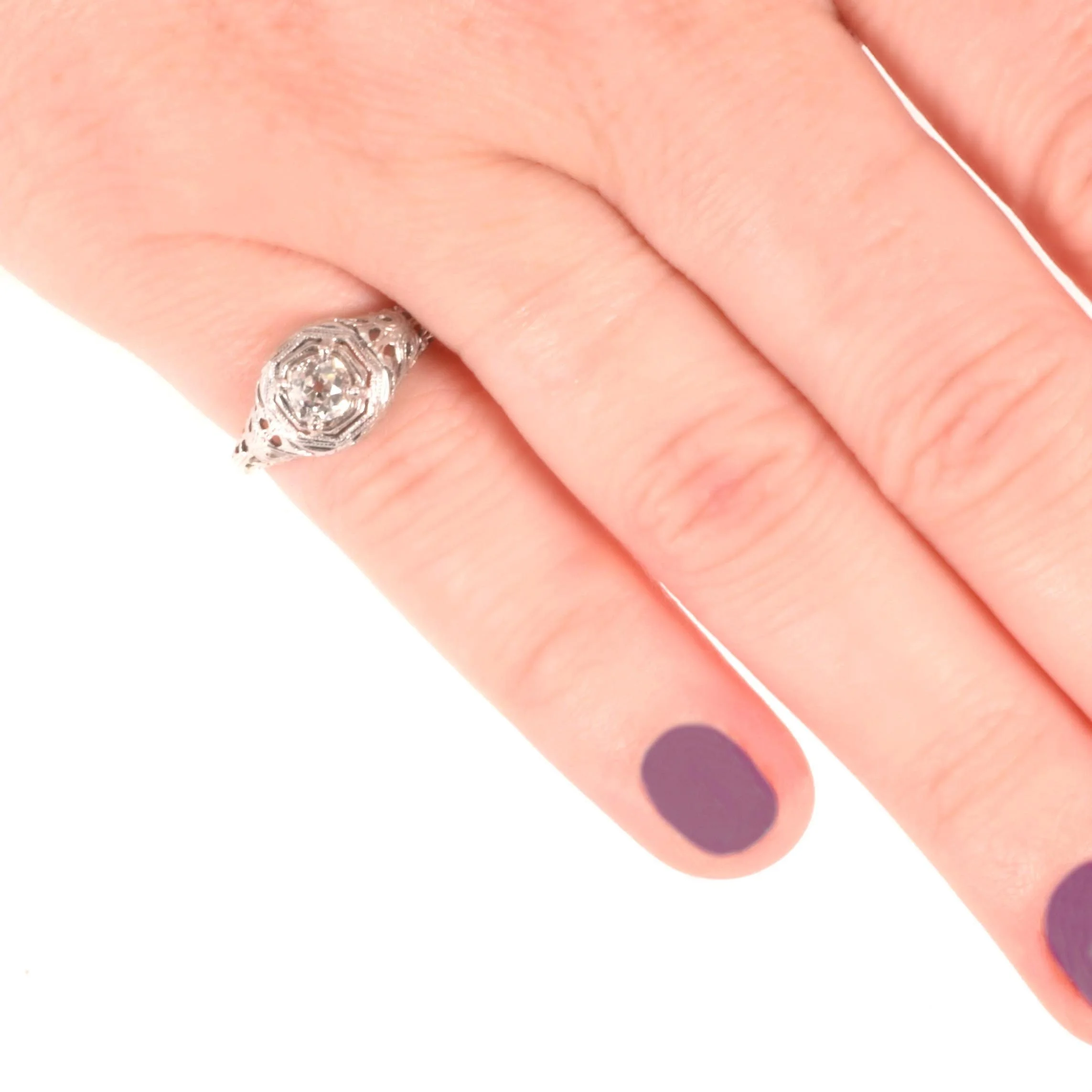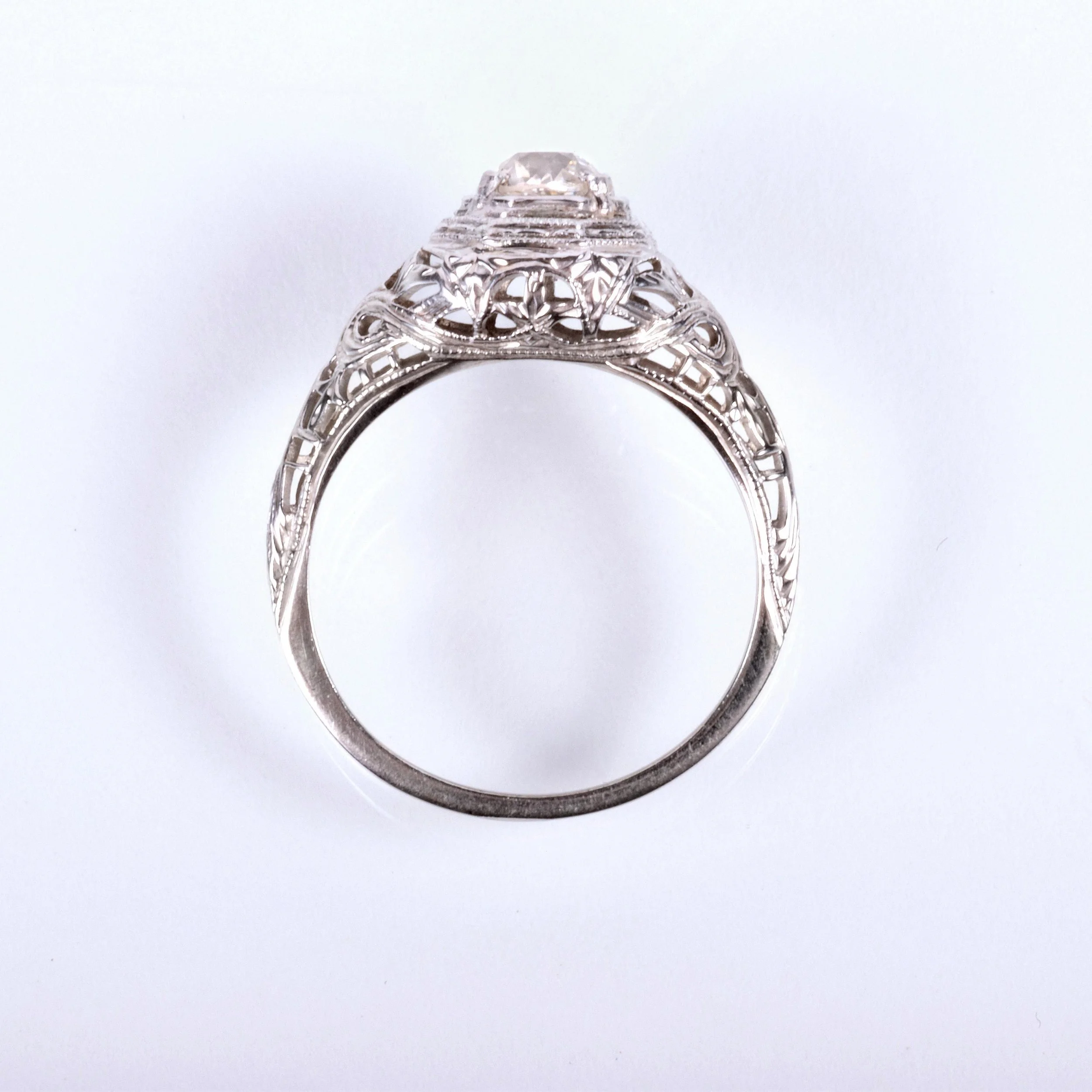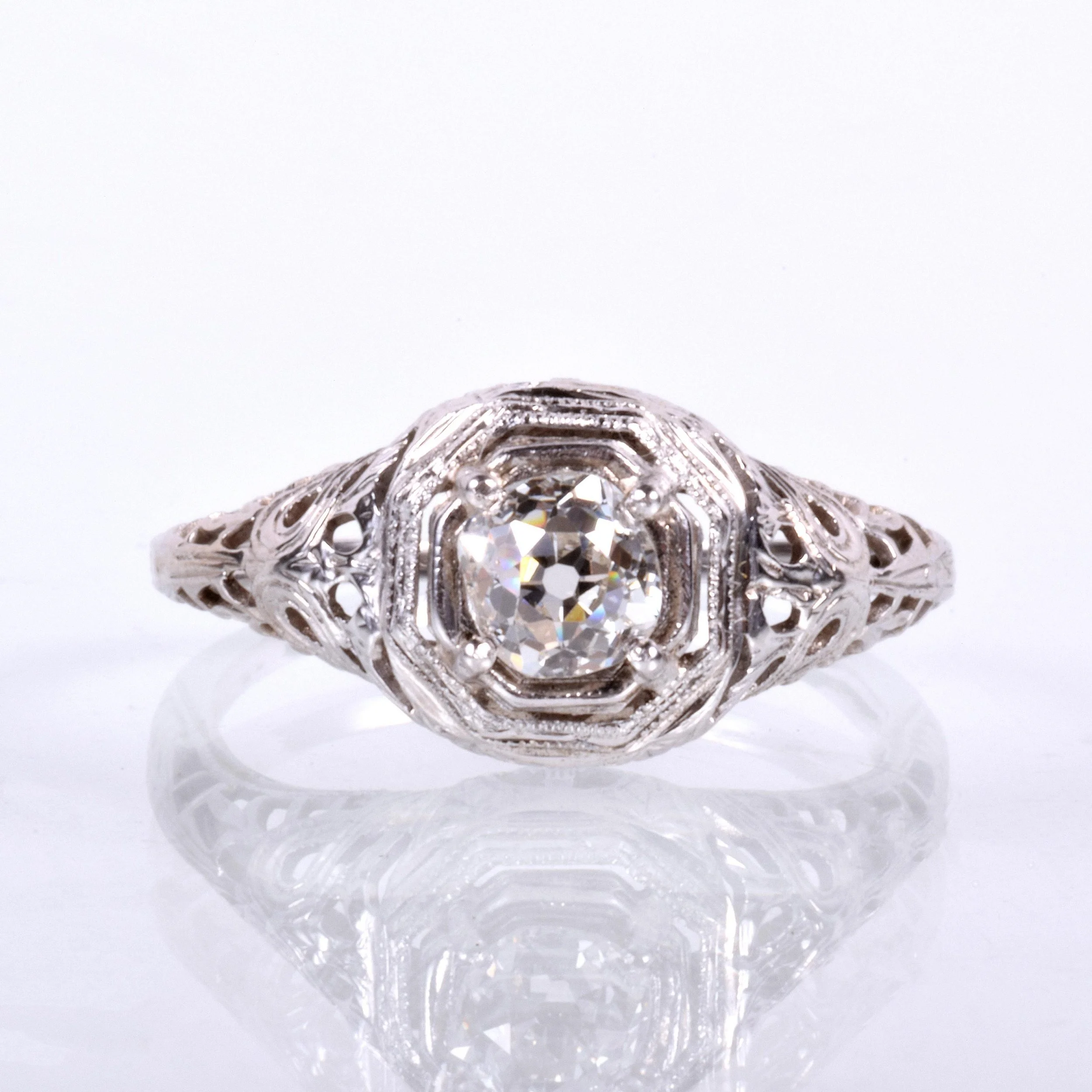 Antique Engagement Ring - Antique 18k White Gold Diamond Engagement Ring 18k White Gold 1910's European Cut Diamond =.44ct VS2/H Ring Size 4 3/8 (sizable) Ring measures approximately 8.6mm at center, back of band is 1.1mm wide.