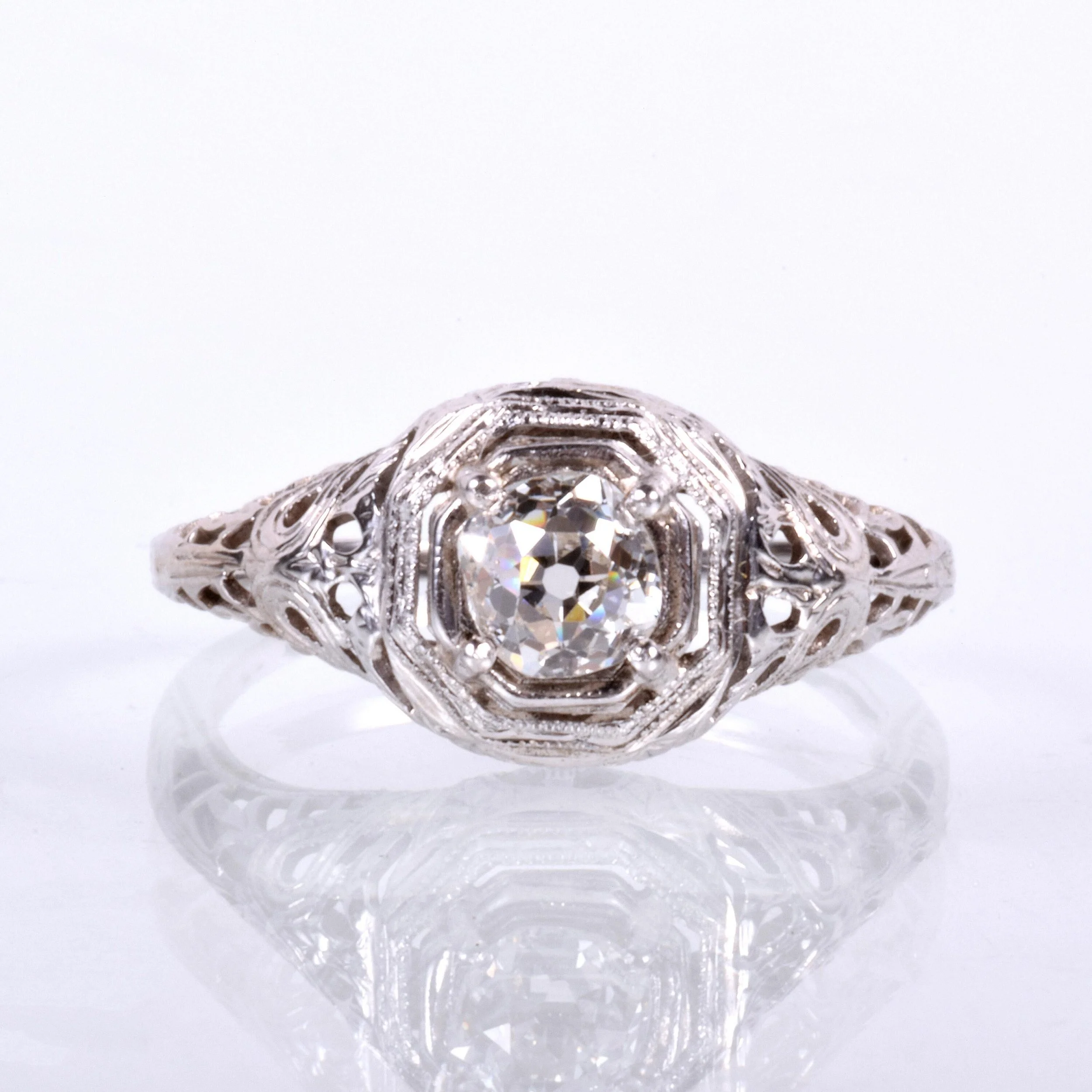 Antique Engagement Ring - Antique 18k White Gold Diamond Engagement Ring 18k White Gold 1910's European Cut Diamond =.44ct VS2/H Ring Size 4 3/8 (sizable) Ring measures approximately 8.6mm at center, back of band is 1.1mm wide.