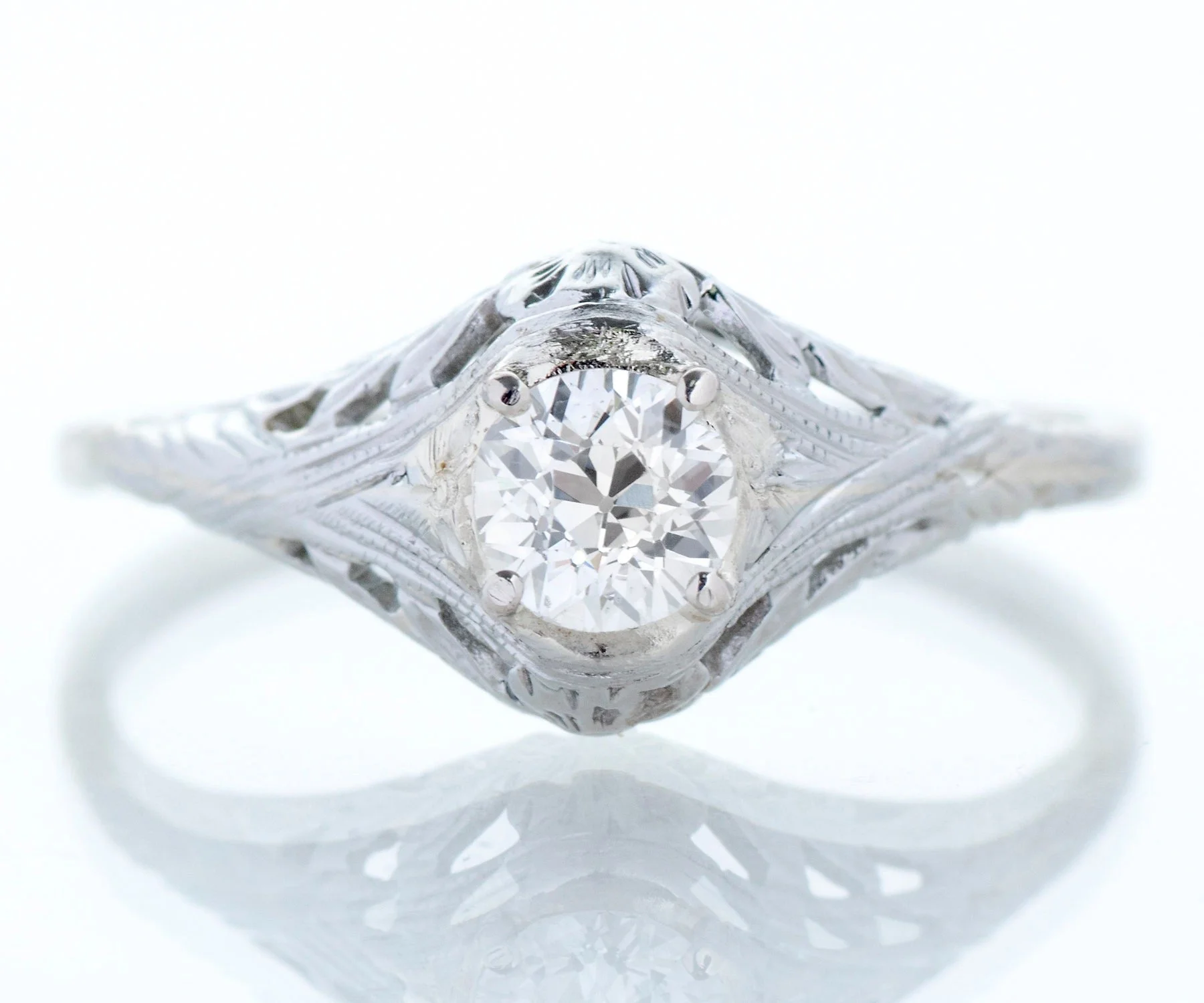 Antique Engagement Ring - Antique 18k White Gold Engraved "1924" Diamond Engagement Ring