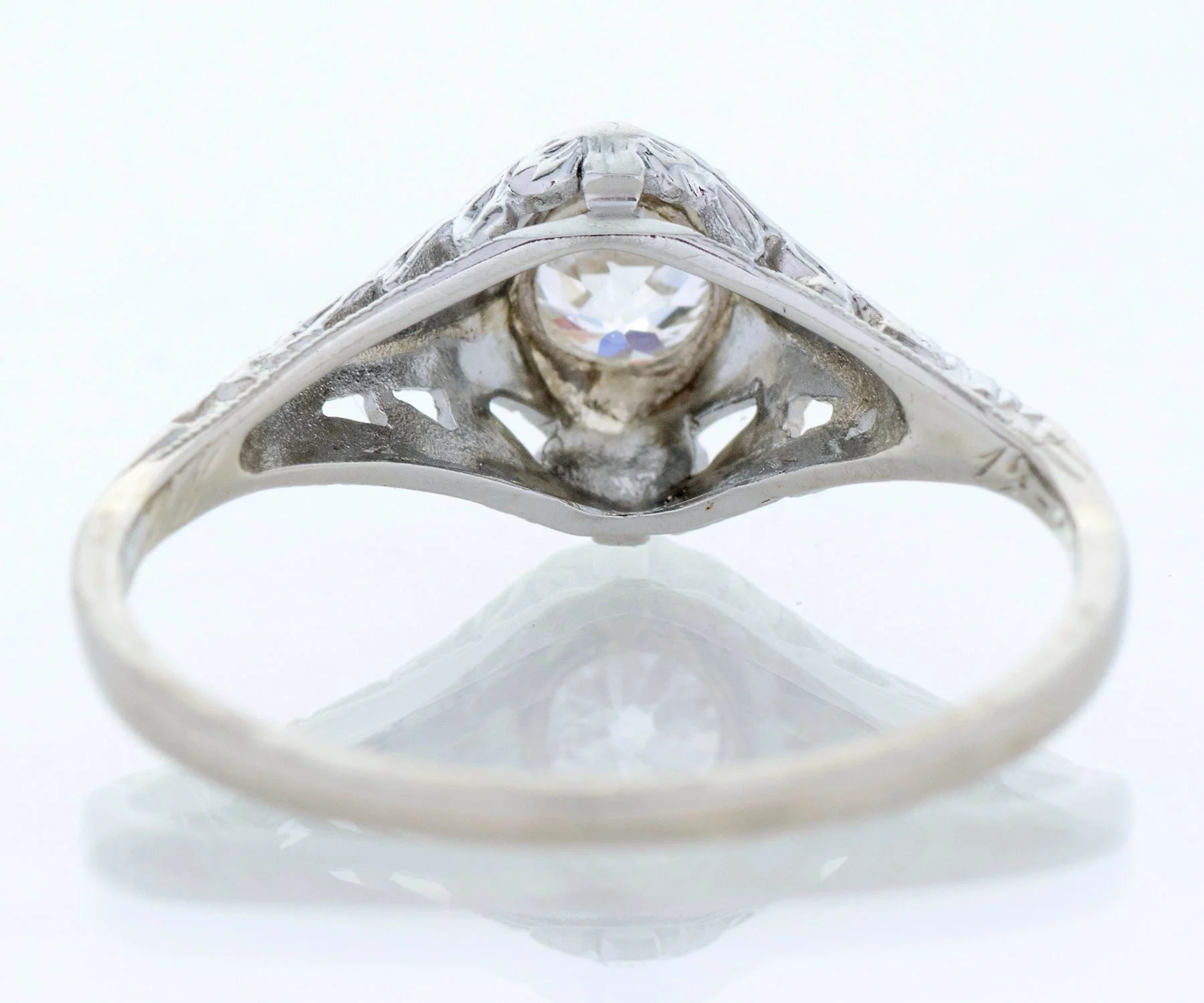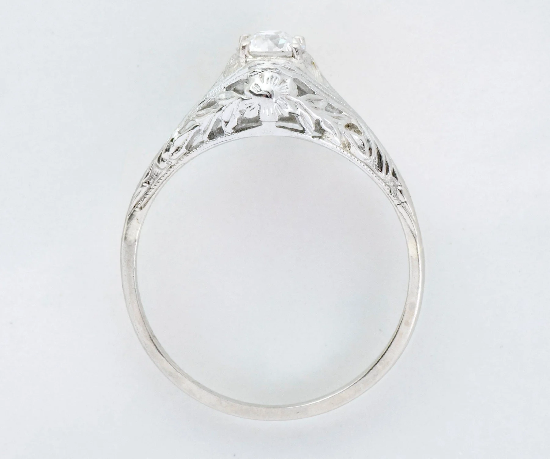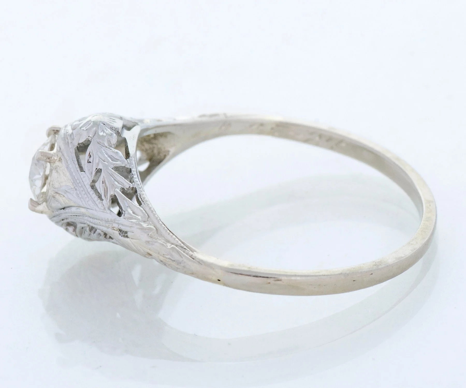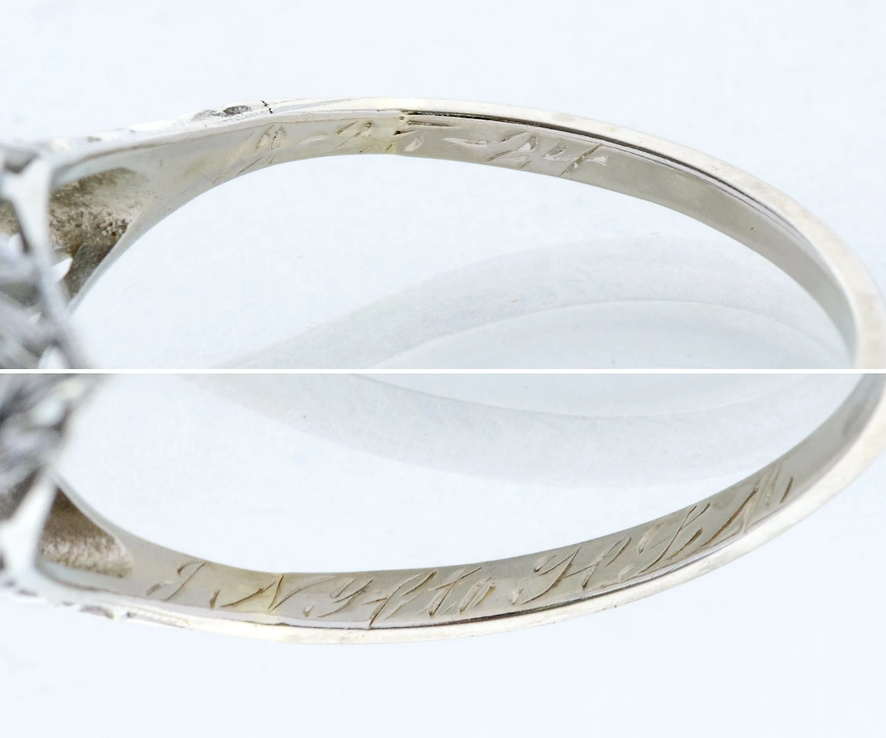 Antique Engagement Ring - Antique 18k White Gold Engraved "1924" Diamond Engagement Ring 18k White Gold Engraved "12-25-24" European Cut Diamond =.34ct VS1/F Ring Size 6.75 (sizable) Ring measures approximately 8.3mm at center, back of band is 1.3mm wide.