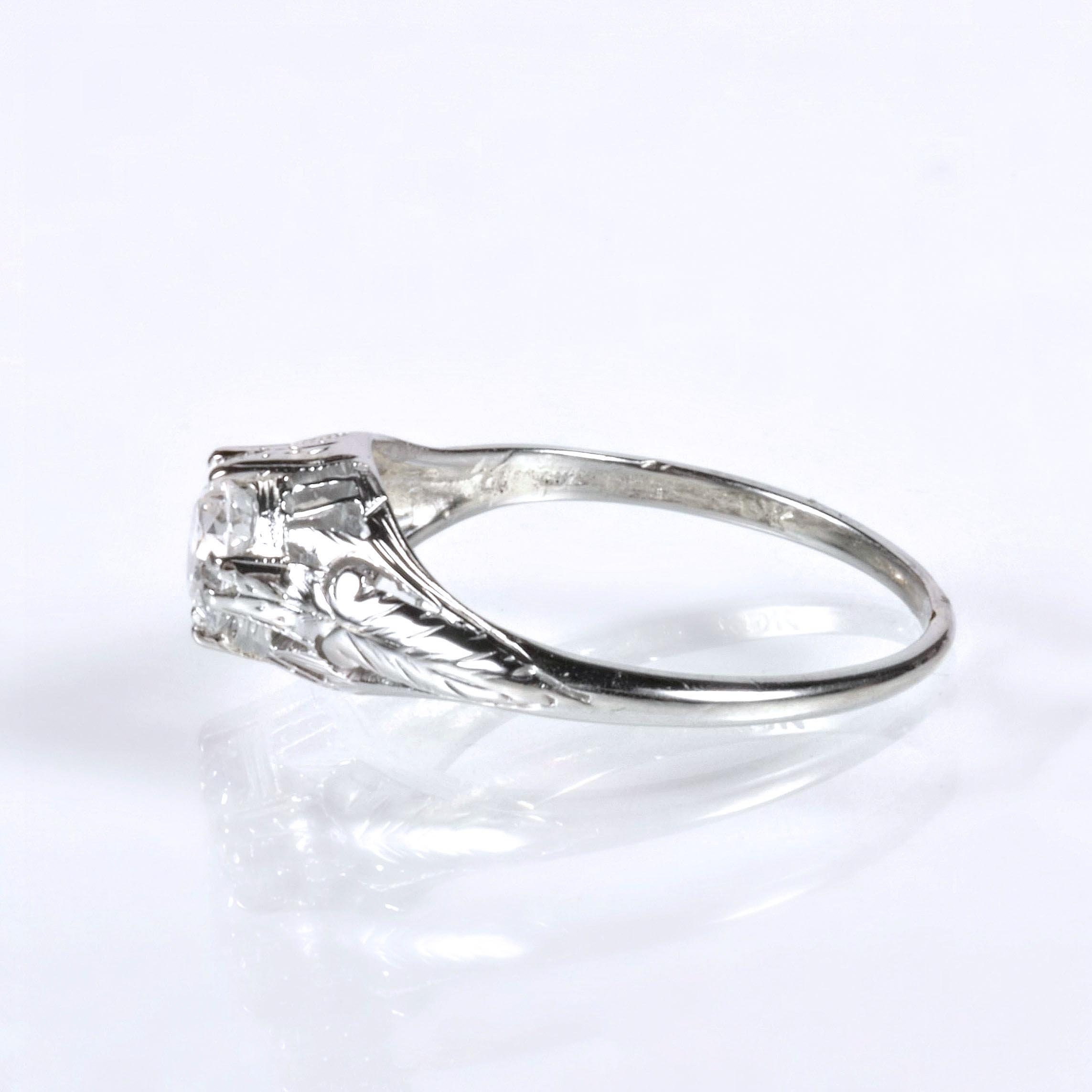 Antique Engagement Ring - Antique 18k White Gold European Cut Diamond Engagement Ring 18k White Gold European Cut Diamond =.41ct VS1/D Ring Size 6 (sizable) Ring measures 7.1mm tall at center and 1.3mm in the back of the ring shank.