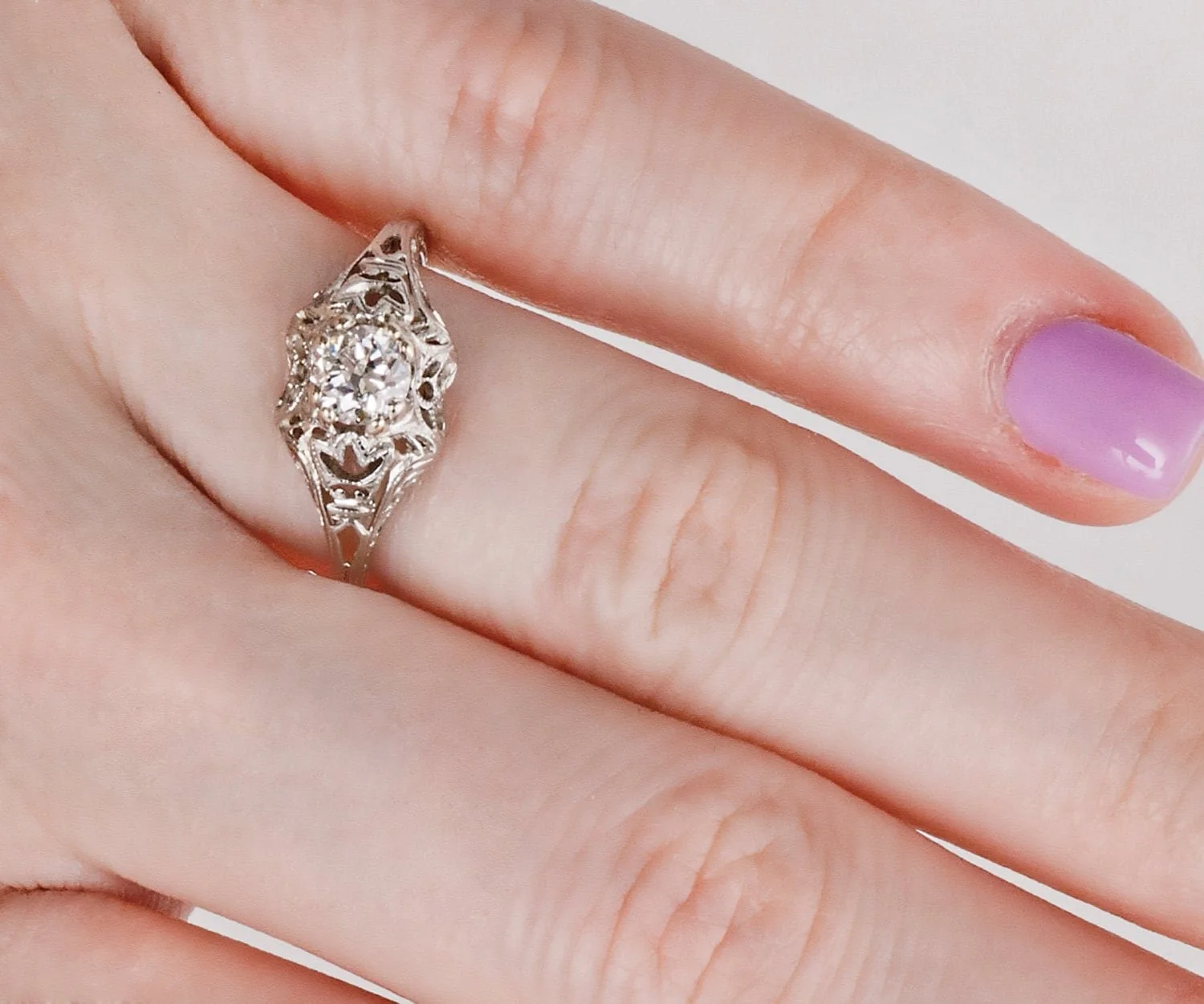 Antique Engagement Ring - Antique 18K White Gold Filigree Diamond Engagement Ring