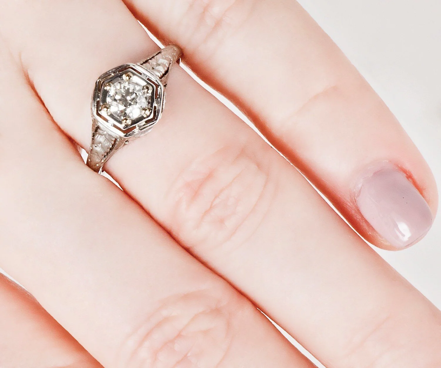 Antique Engagement Ring - Antique 1910 "Belais" 18k White Gold Diamond Engagement Ring