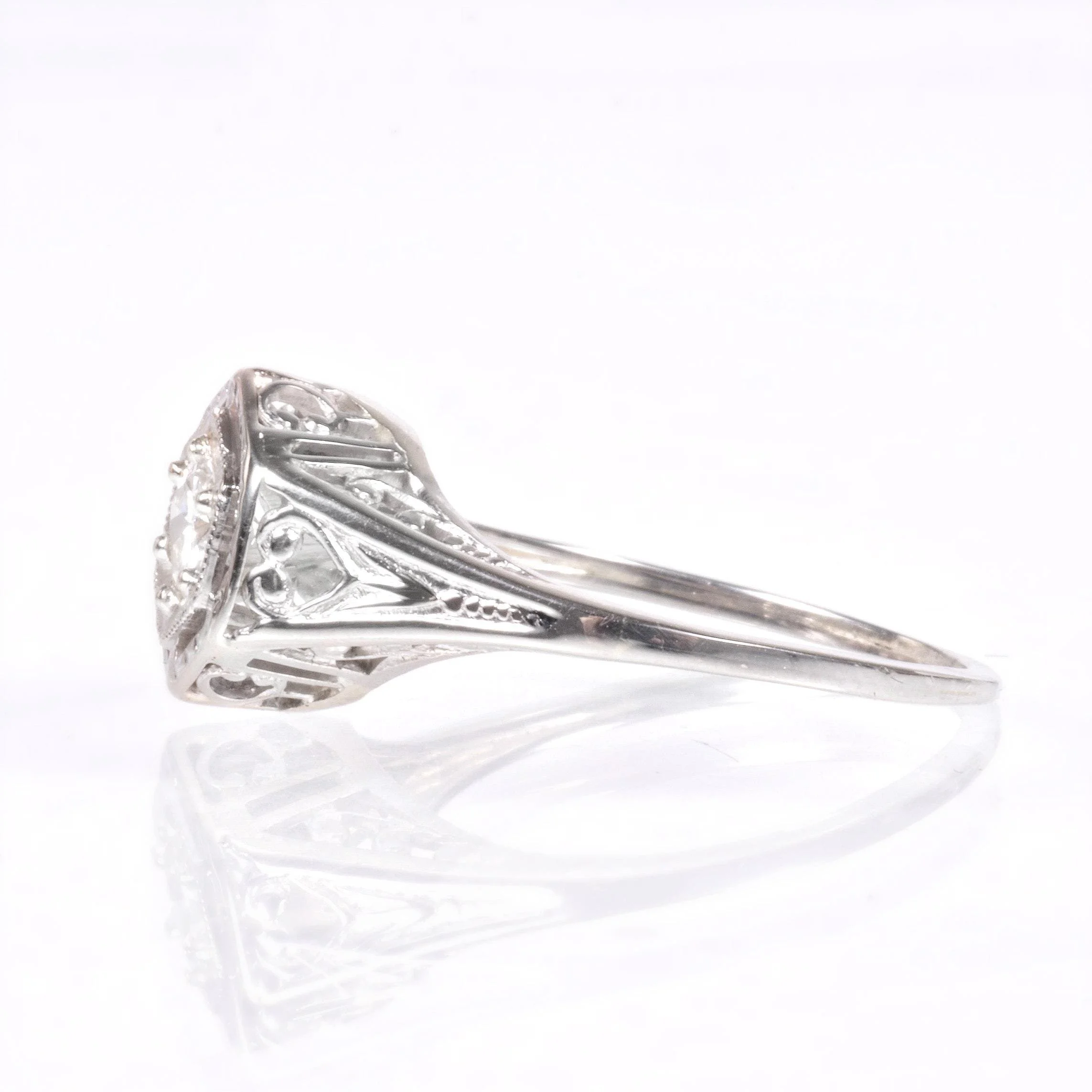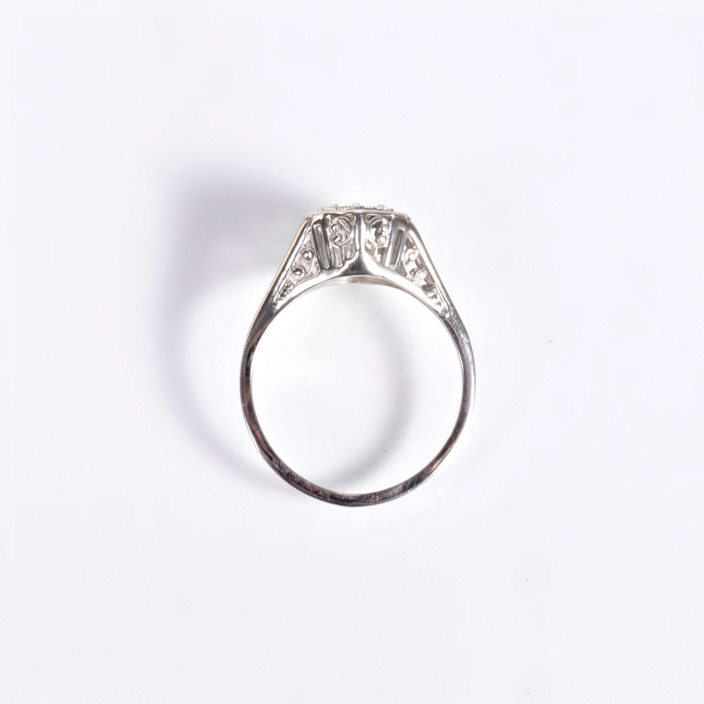 Antique Engagement Ring - Antique 1910's 14k White Gold Diamond Engagement Ring Circa 1910's 14k White Gold European Cut Diamond =.27ct VS1/G Ring Size 6.5 (sizable) Ring measures approximately 9.7mm wide at center. Back of band measures 1mm wide with a 1.1mm rise.