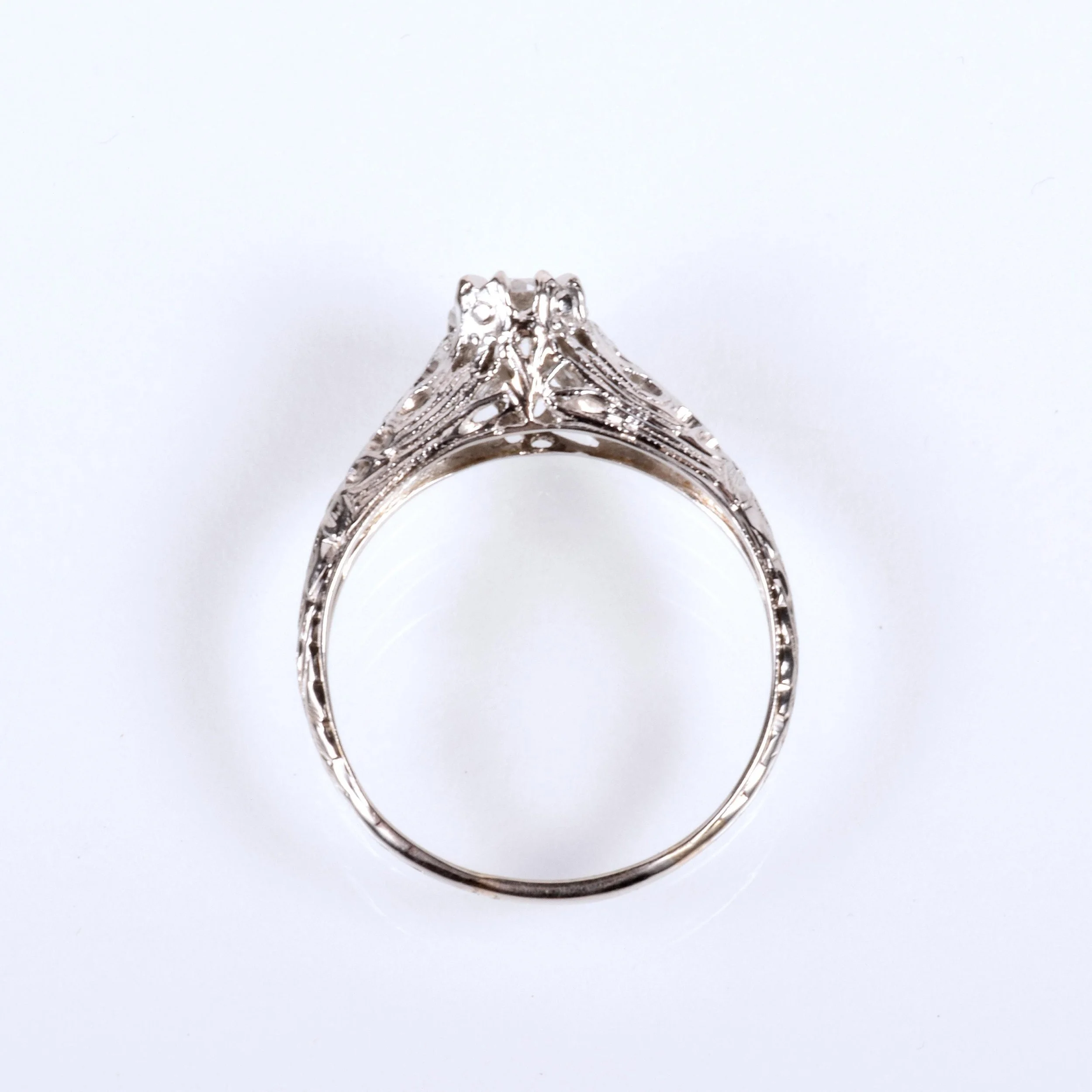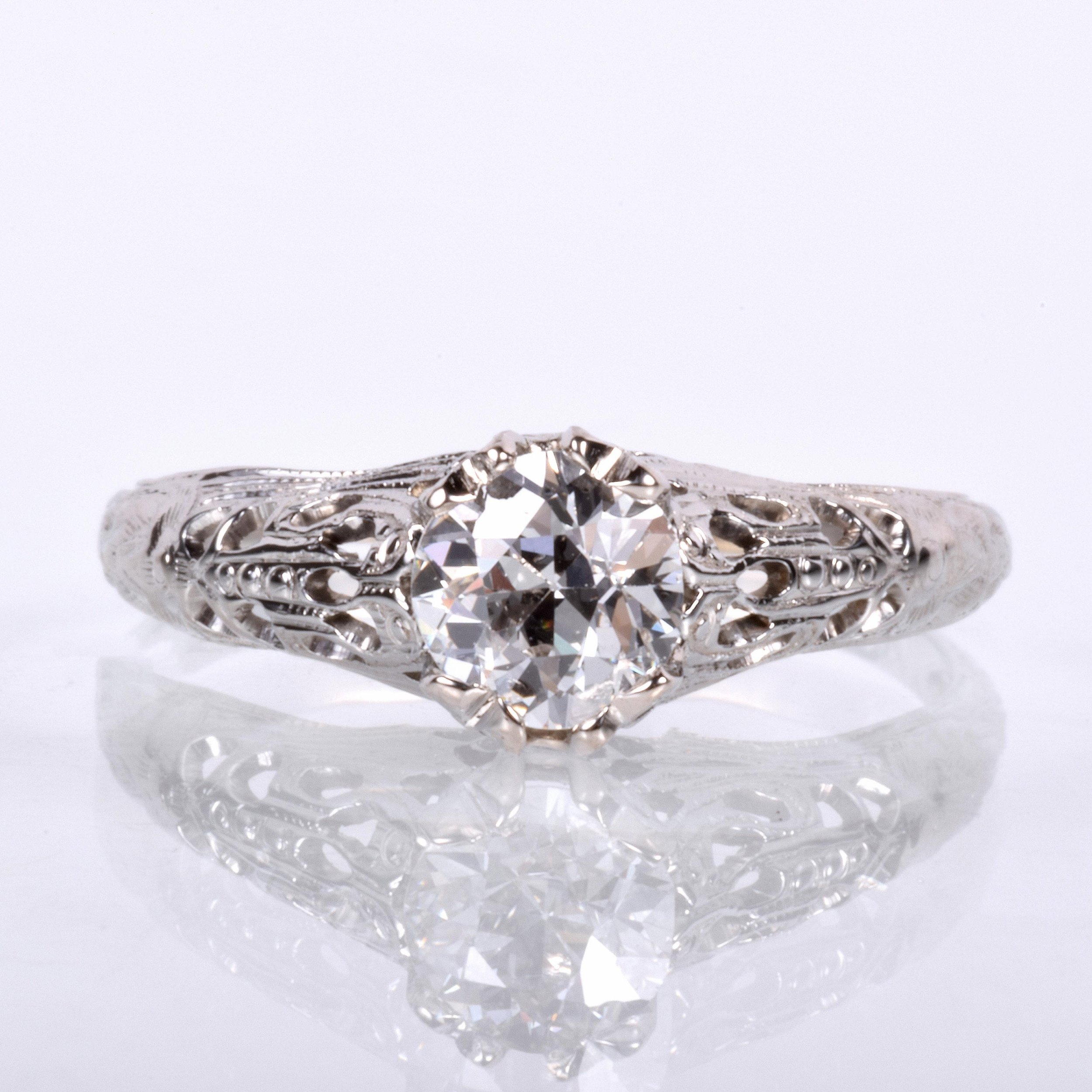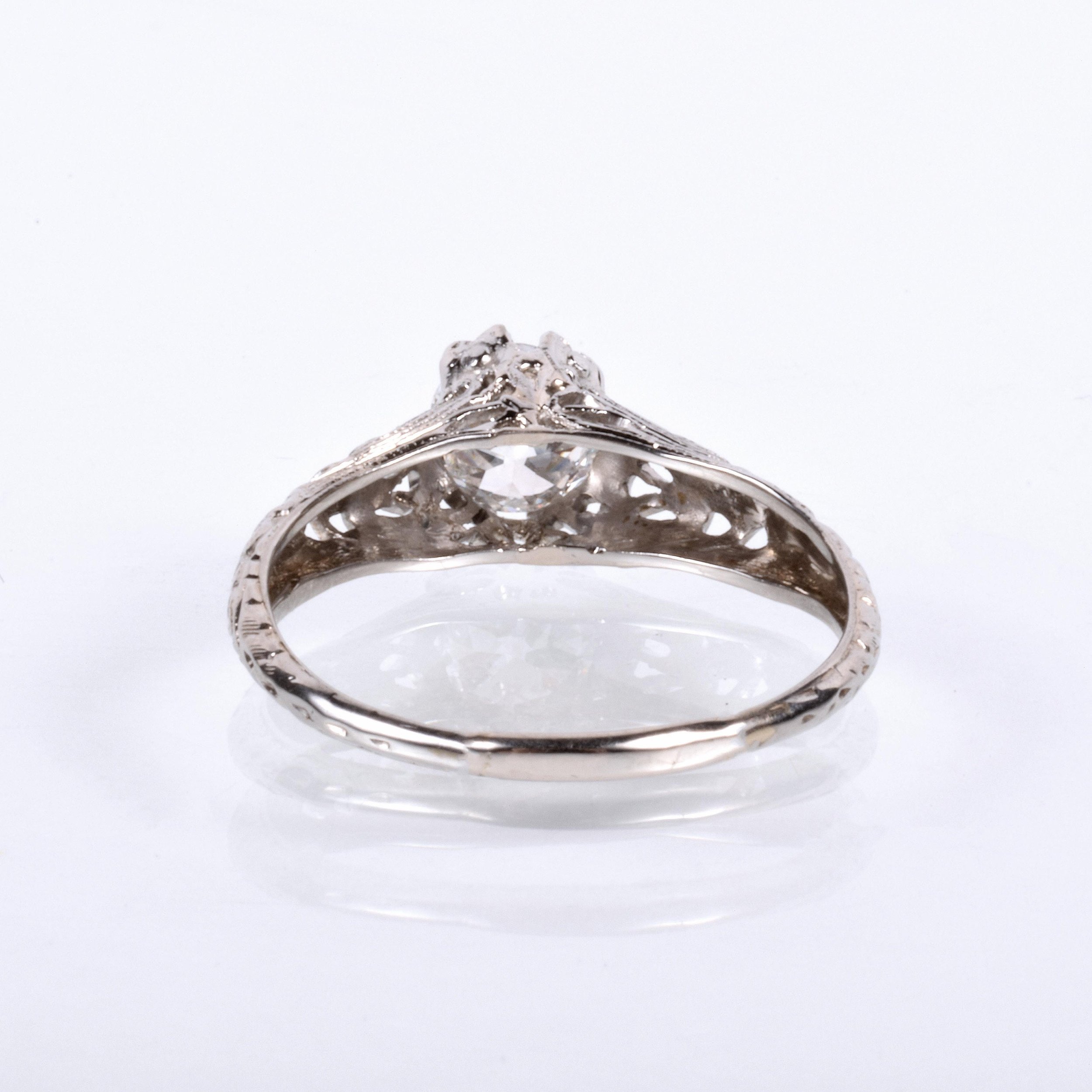Antique Engagement Ring - Antique 1910's 18k White Gold Diamond Engagement Ring 18k White Gold 1910's European Cut Diamond =.63ct VS2/H (GIA) Ring Size 6.75 (sizable) Ring measures approximately 6.6mm at center, back of band is 1.5mm wide.