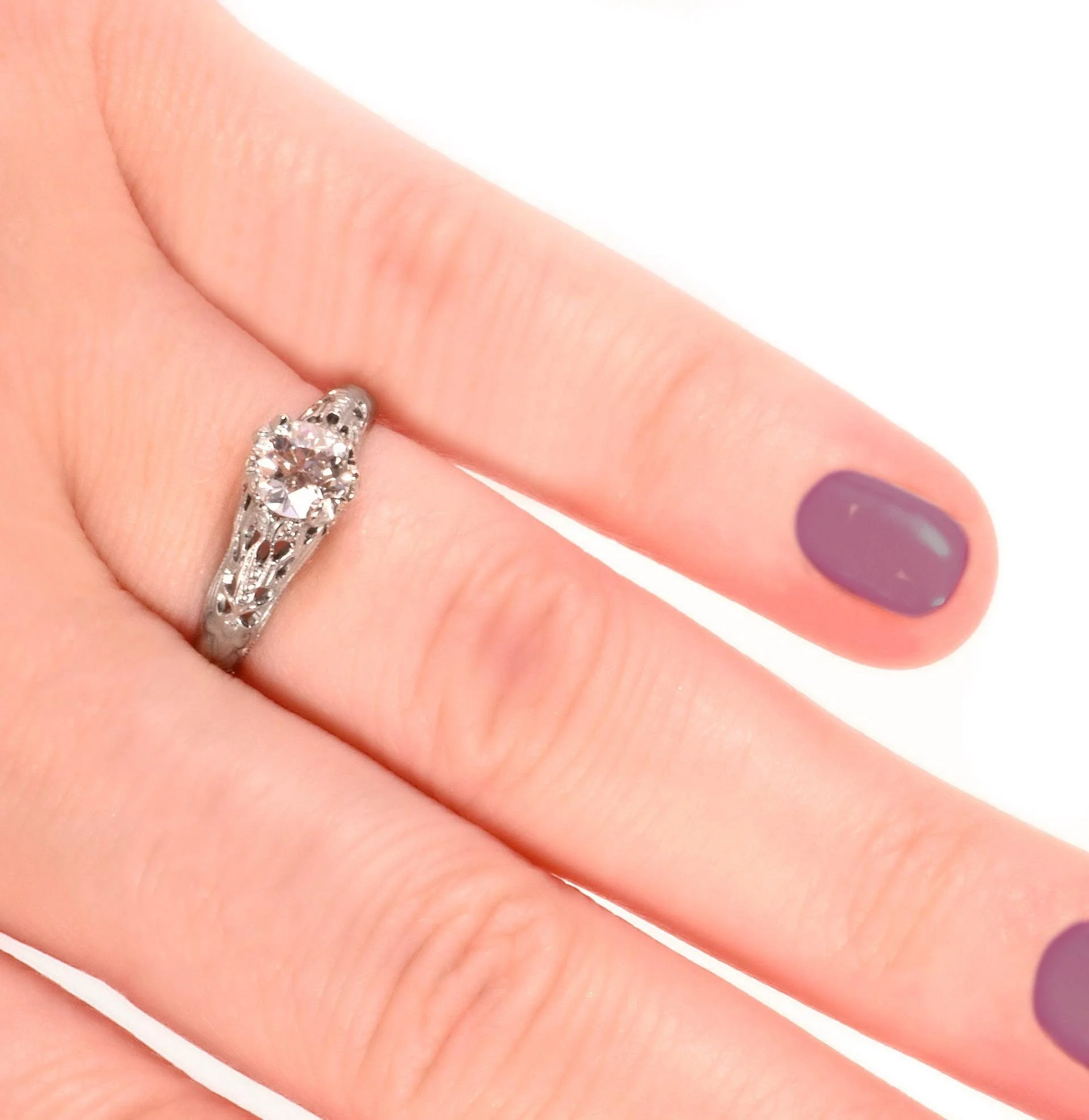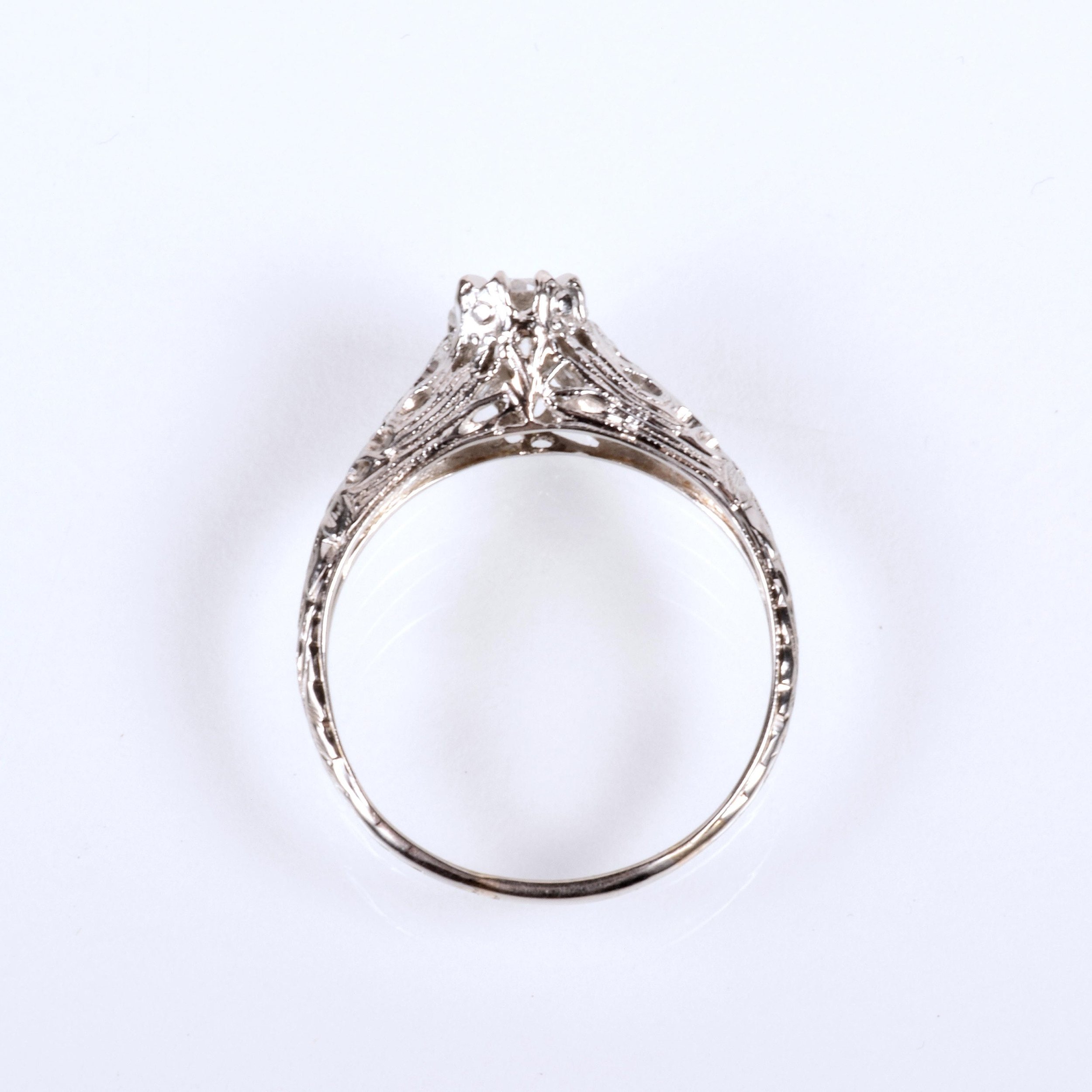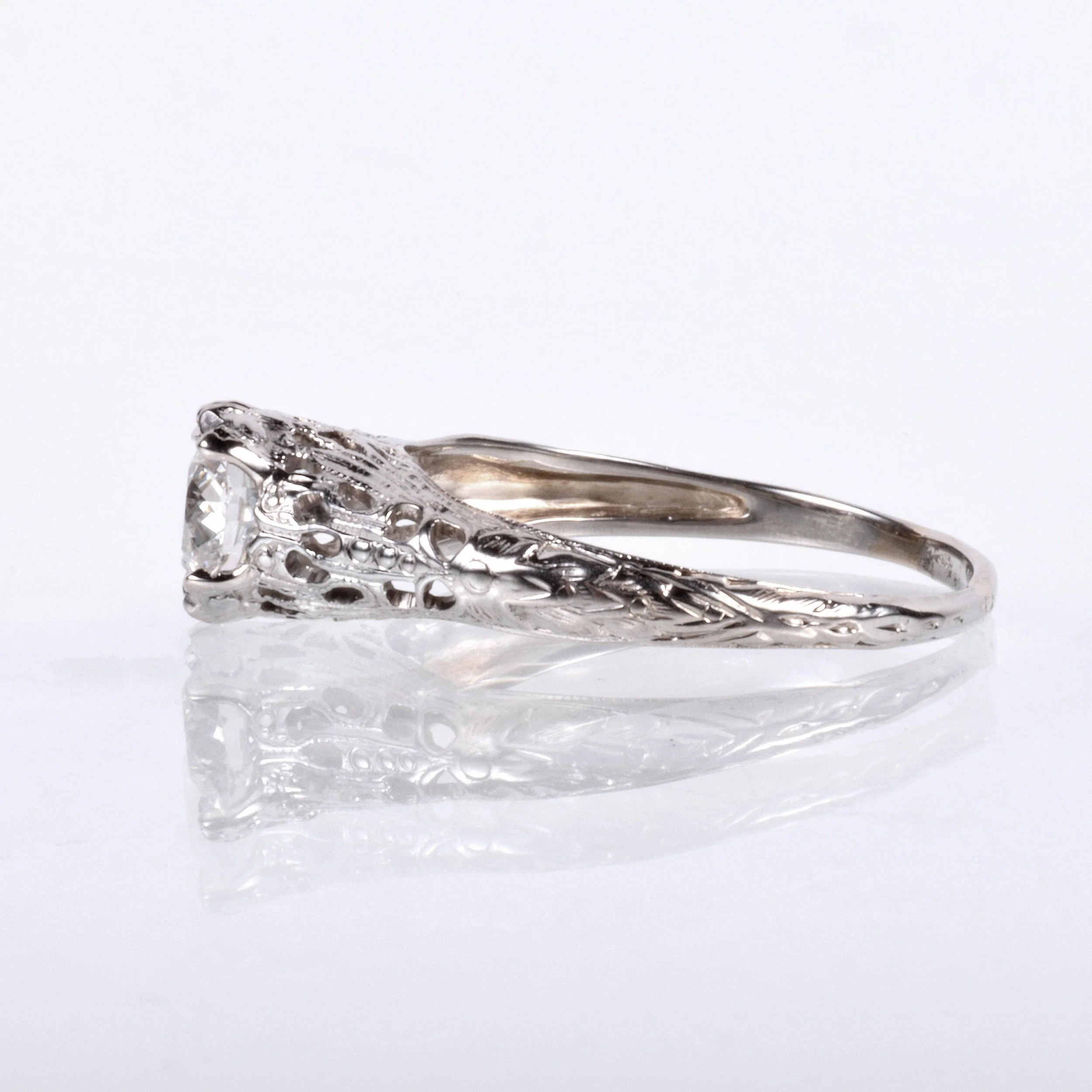 Antique Engagement Ring - Antique 1910's 18k White Gold Diamond Engagement Ring 18k White Gold 1910's European Cut Diamond =.63ct VS2/H (GIA) Ring Size 6.75 (sizable) Ring measures approximately 6.6mm at center, back of band is 1.5mm wide.