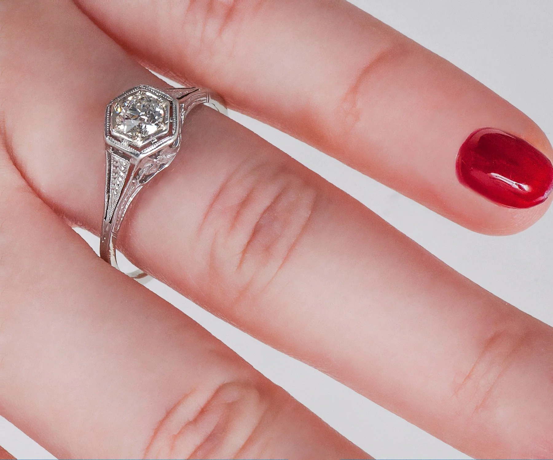 Antique Engagement Ring - Antique 1910's 18k White Gold Diamond Engagement Ring 1910's 18k White Gold European Cut Diamond =.36ct VS2/G Ring Size 8.25 (ring is sizable) Ring measures approximately 7.8mm at center, back of band is 1.4mm wide.