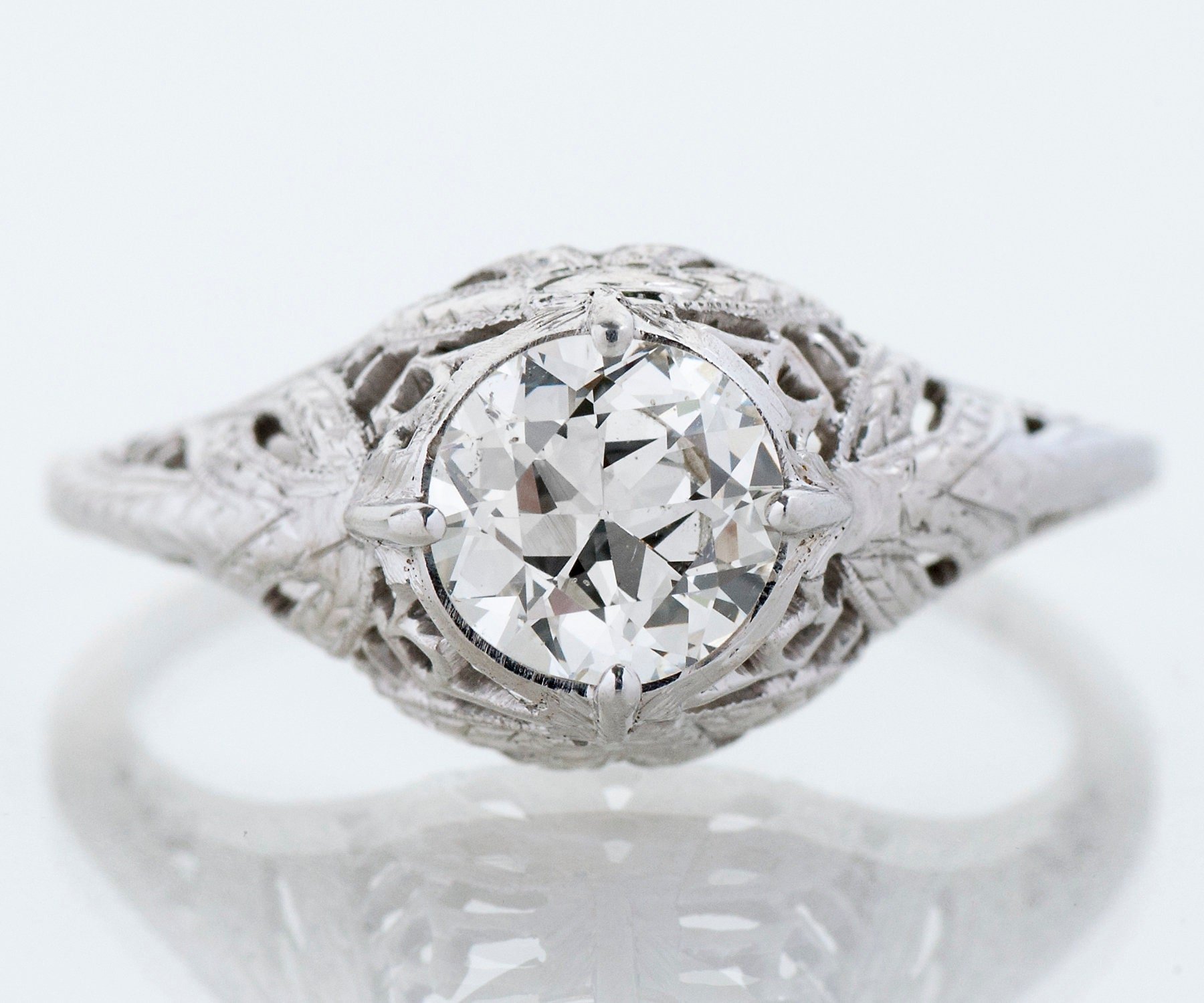 Antique Engagement Ring - Antique 1910's 18k White Gold Diamond Engagement Ring 18k White Gold European Cut Diamond =.83ct SI1/H Ring Size 7.25 (ring is sizable) Ring measures approximately 9.4mm at center, back of band is 1.2mm wide.