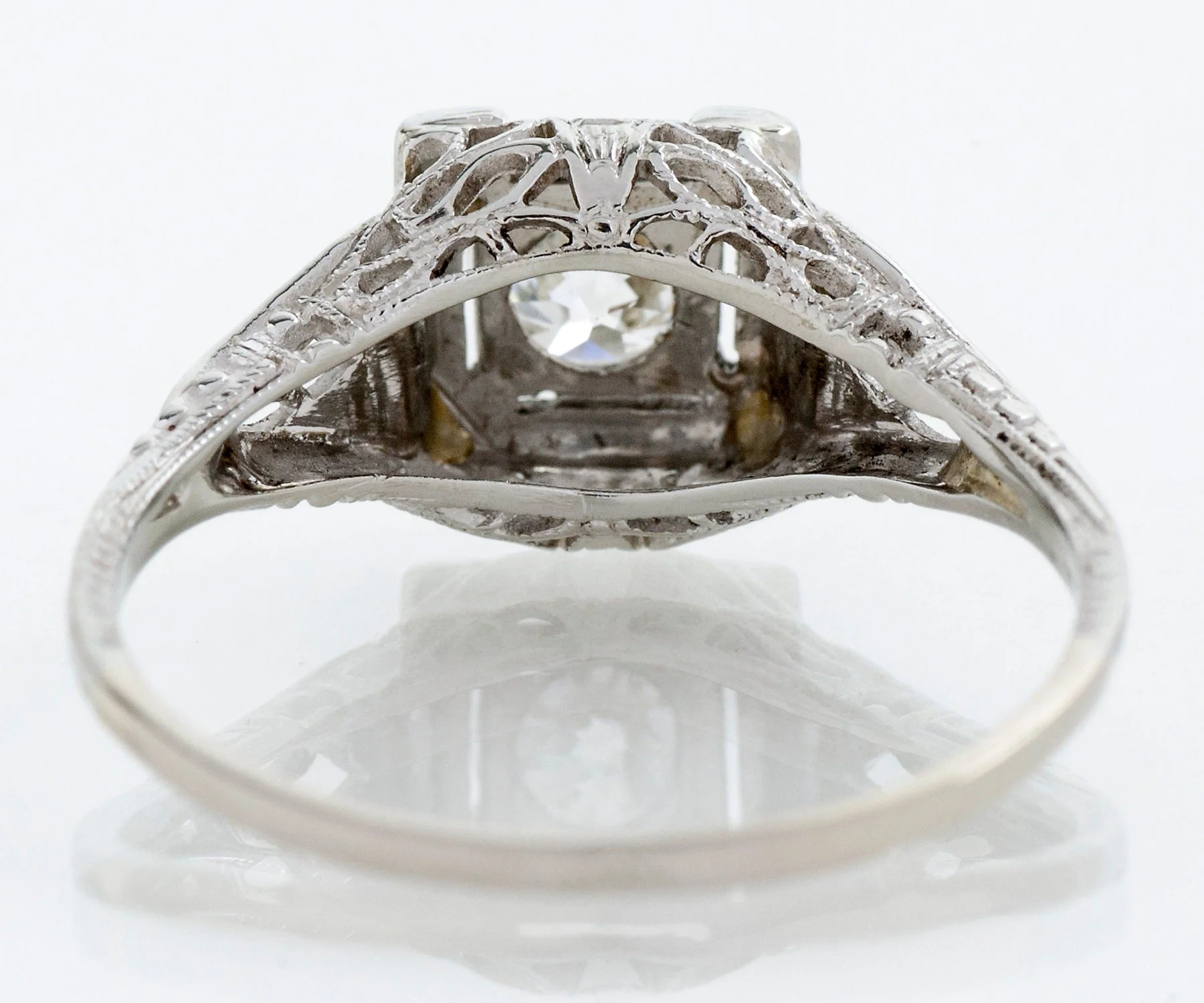 Antique Engagement Ring - Antique 1910's 18k White Gold Filigree Diamond Engagement Ring Edwardian 18k White Gold European Cut Diamond =.57ct VS2/E Ring Size 8.25 (ring is sizable) Ring measures approximately 9.1mm at center, back of band is 1.2mm wide.