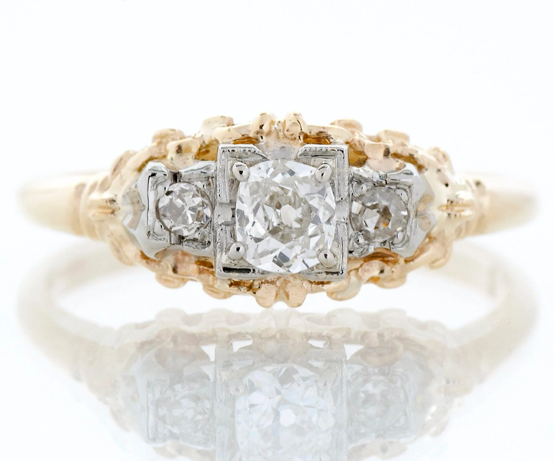 Antique Engagement Ring - Antique 1920's 14k Two-Tone Diamond Engagement Ring