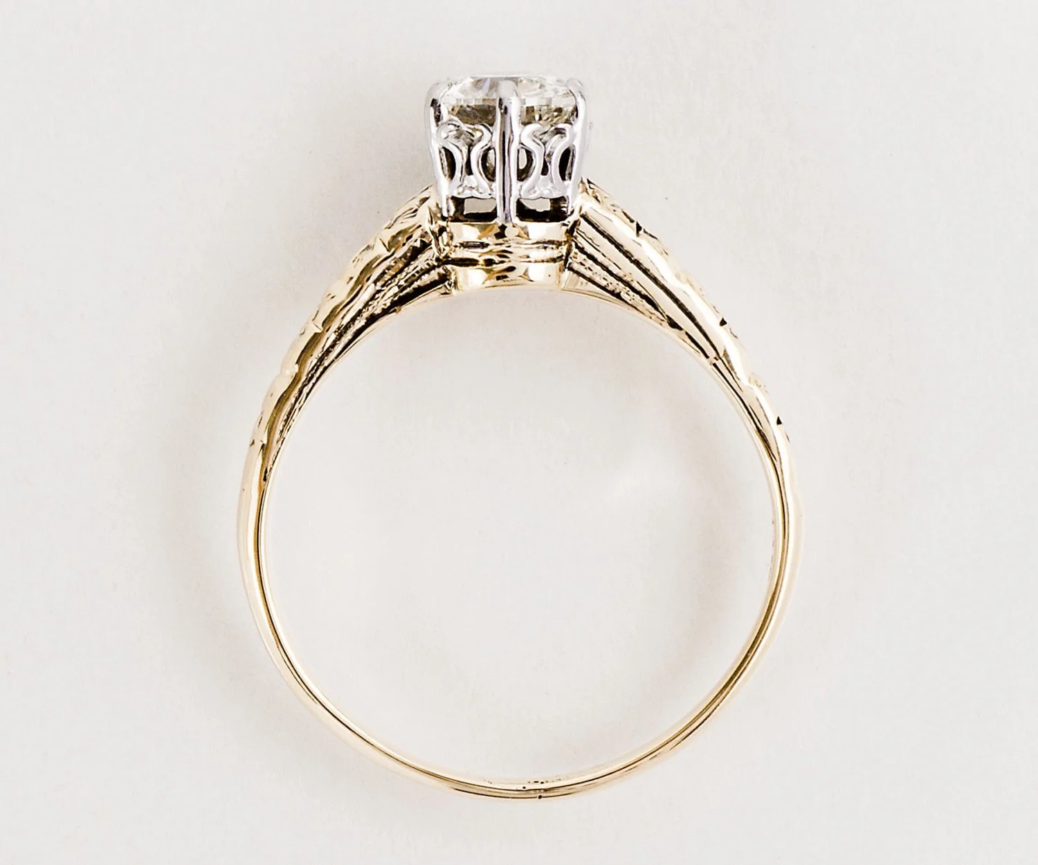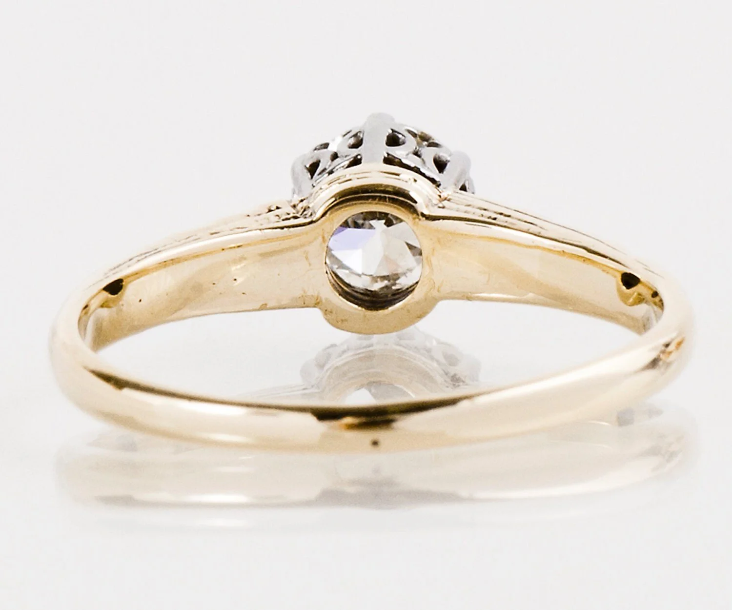 Antique Engagement Ring - Antique 1920's 14k Yellow & White Gold Solitaire Diamond Engagement Ring 14k Yellow & White Gold Old European Cut Diamond =.53ct VS2/H Ring Size 5-7/8 (ring is sizable) Ring measures approximately 6mm at center, back of band is 1.6mm.